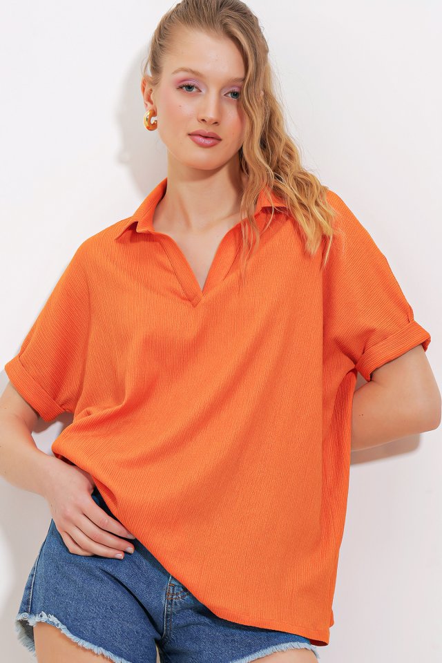 Çağla Oversize Polo Yaka Örme Bluz 0486