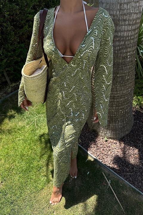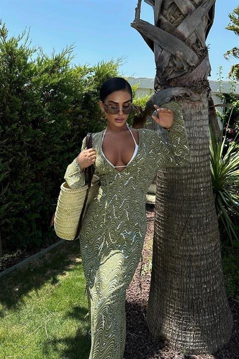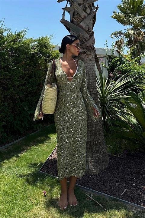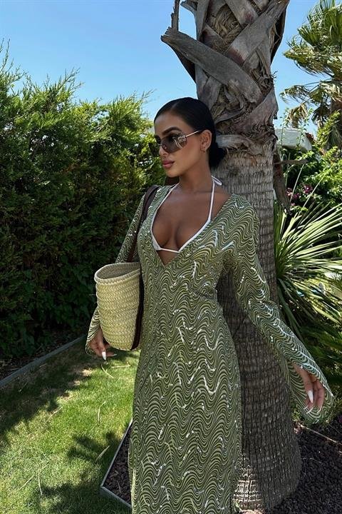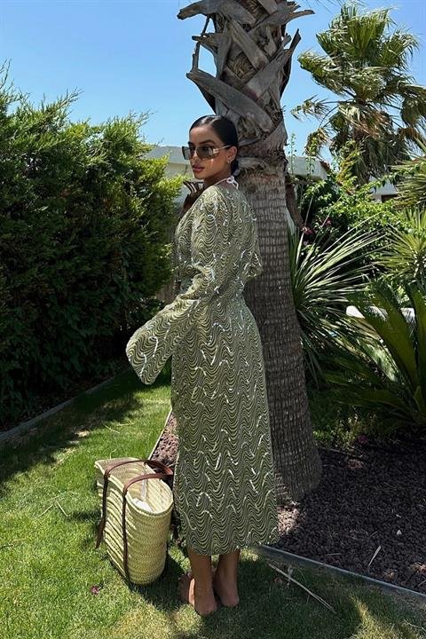 Caitlin Desenli Yırtmaç Detay Elbise 2410-08