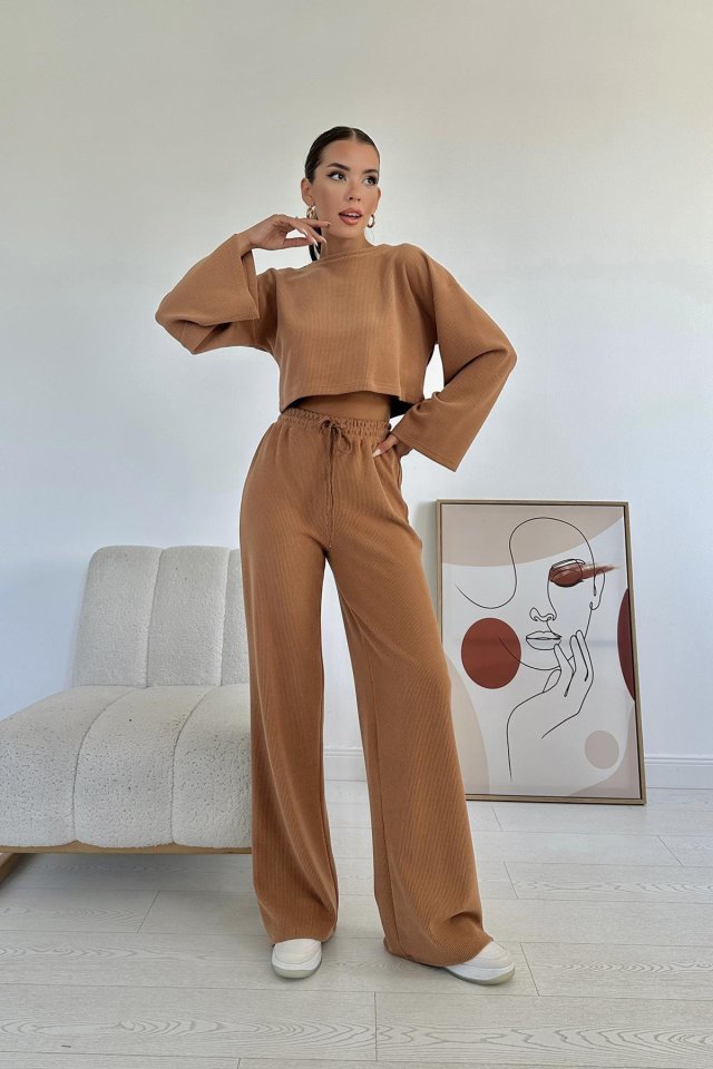 Camel Fitilli Bluz Ve Pantolon Takım