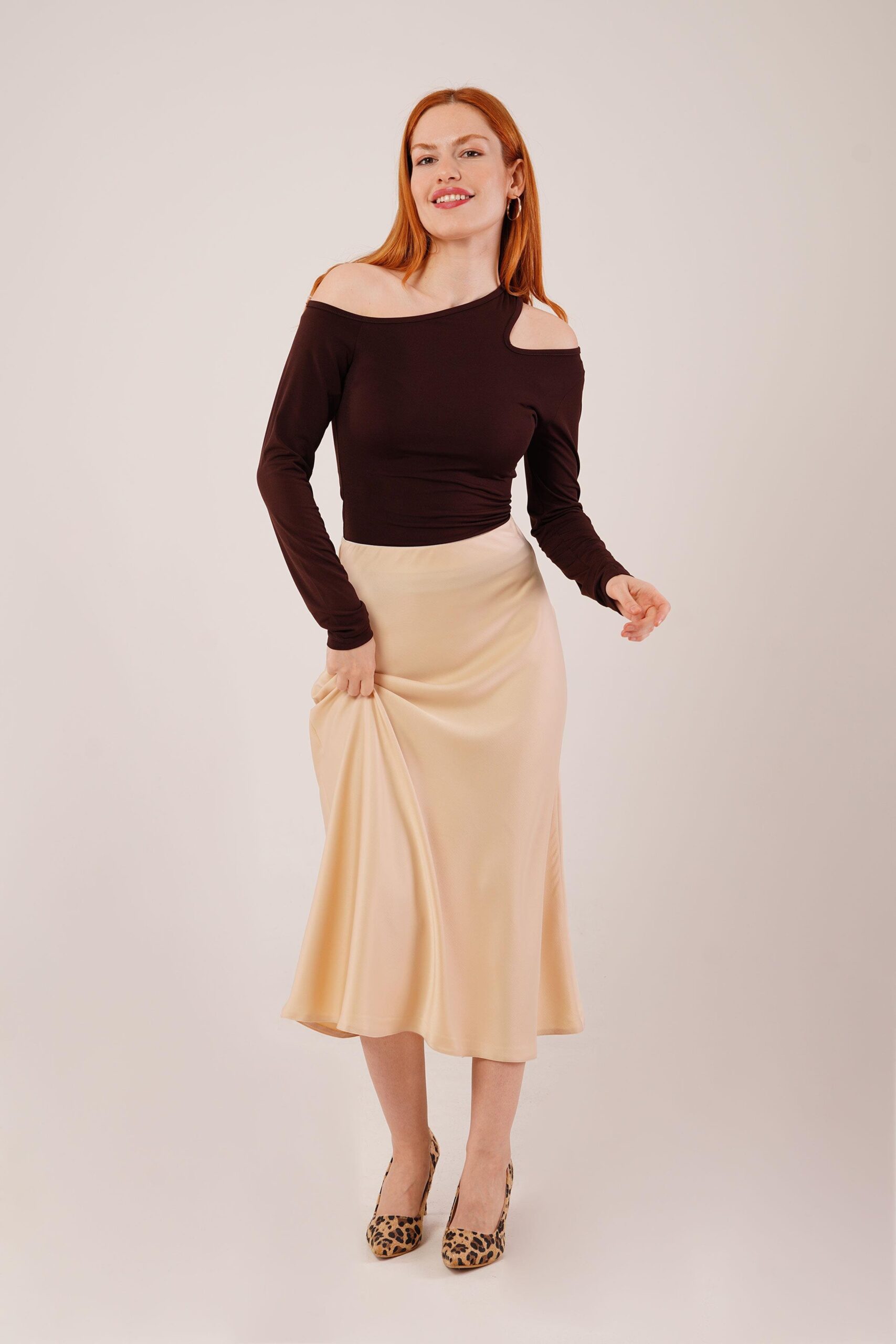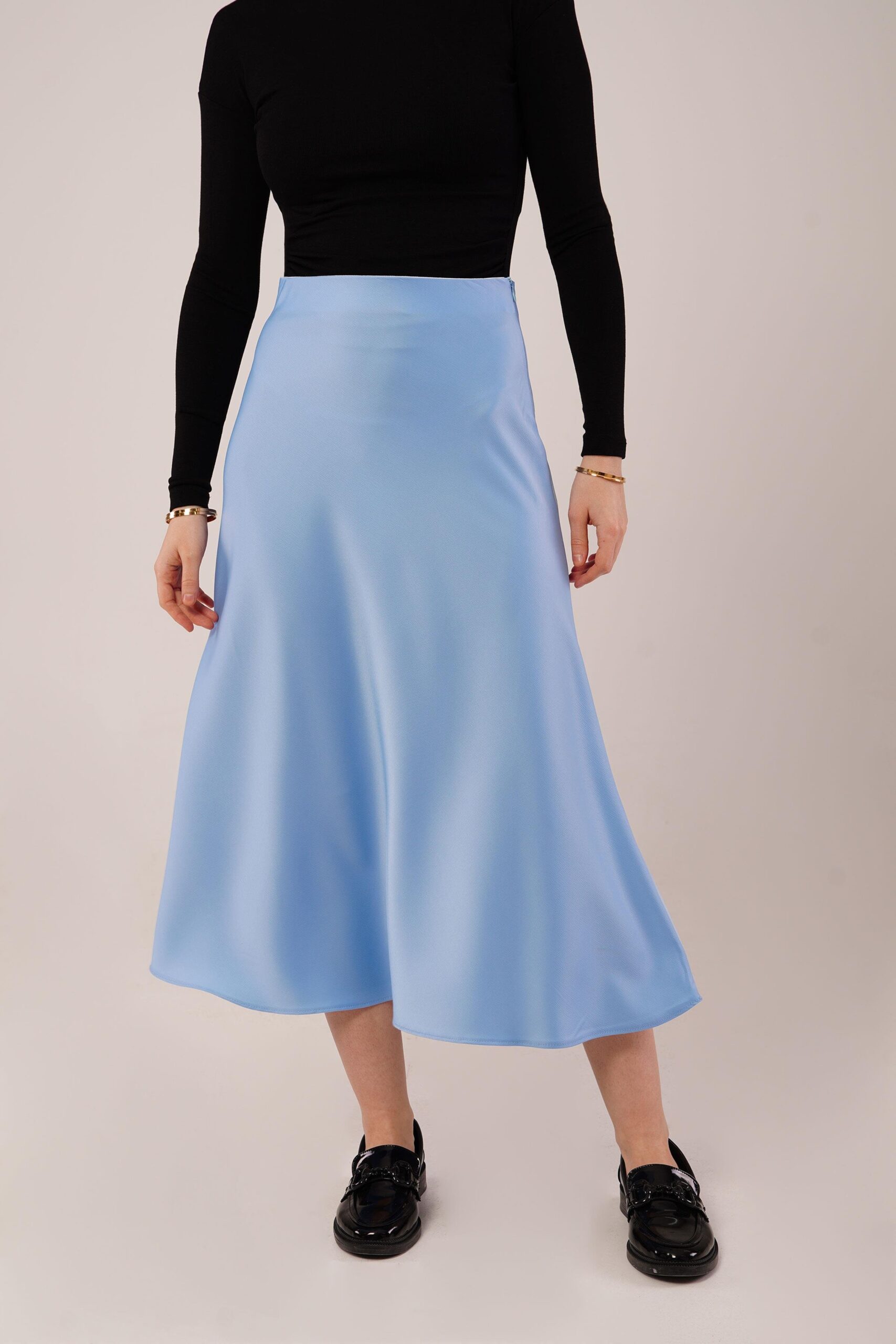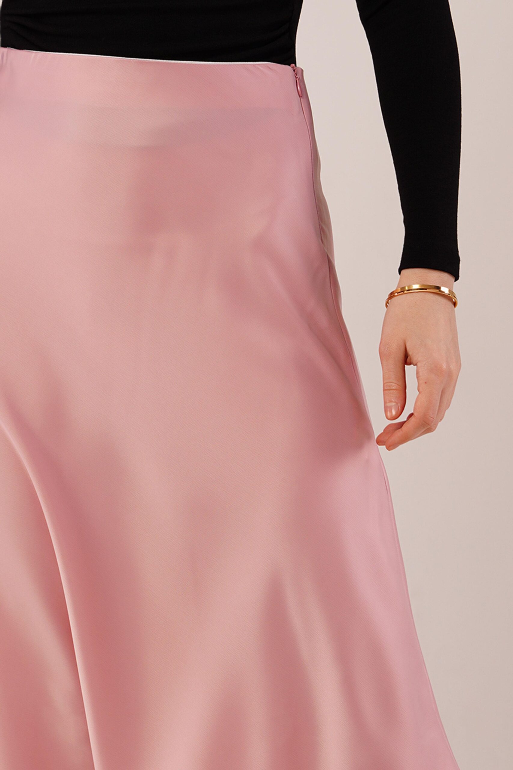 Çan Kesim Midi Pembe Saten Etek