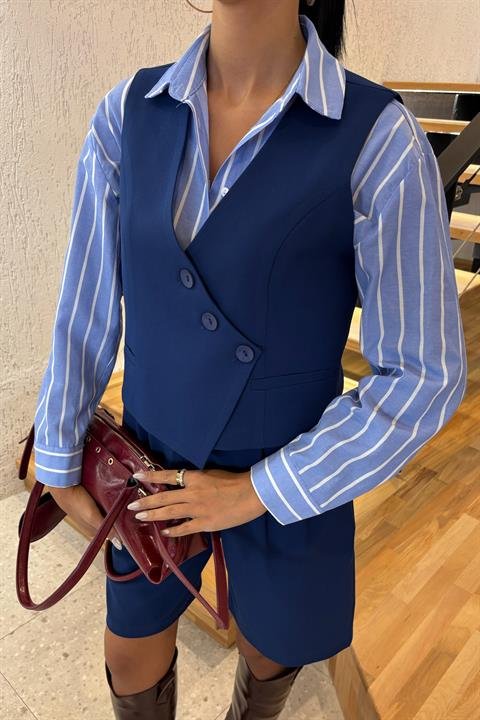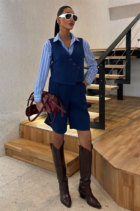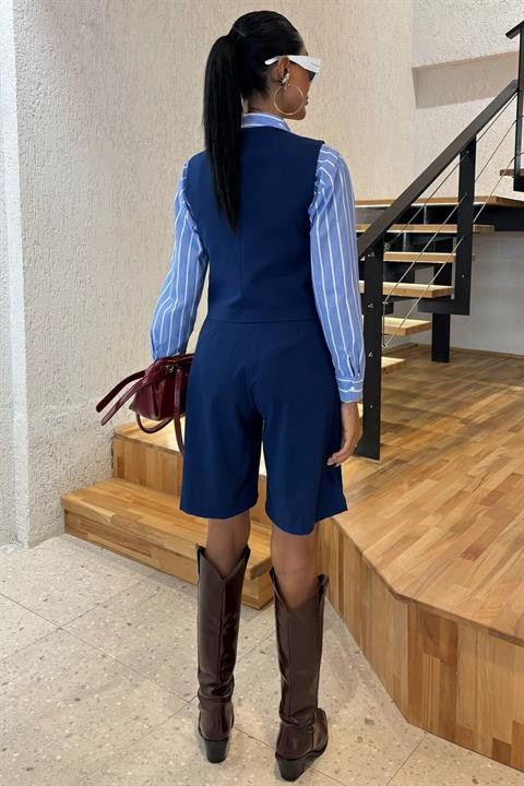 Çapraz Düğmeli Ve Bermuda Şortlu Yelekli Takım 10171