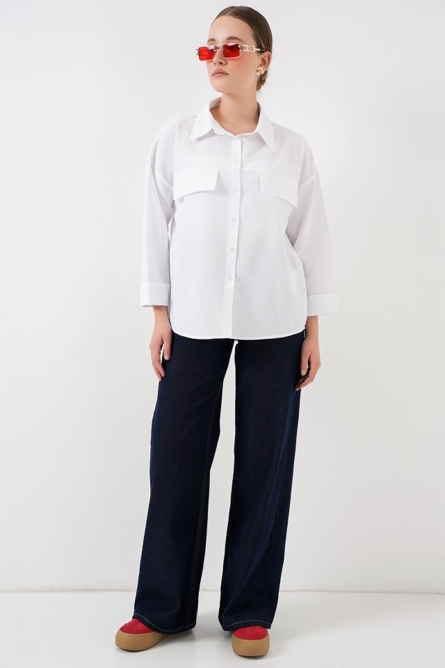 Cep Detaylı Oversize Gömlek 20313 – Siyah