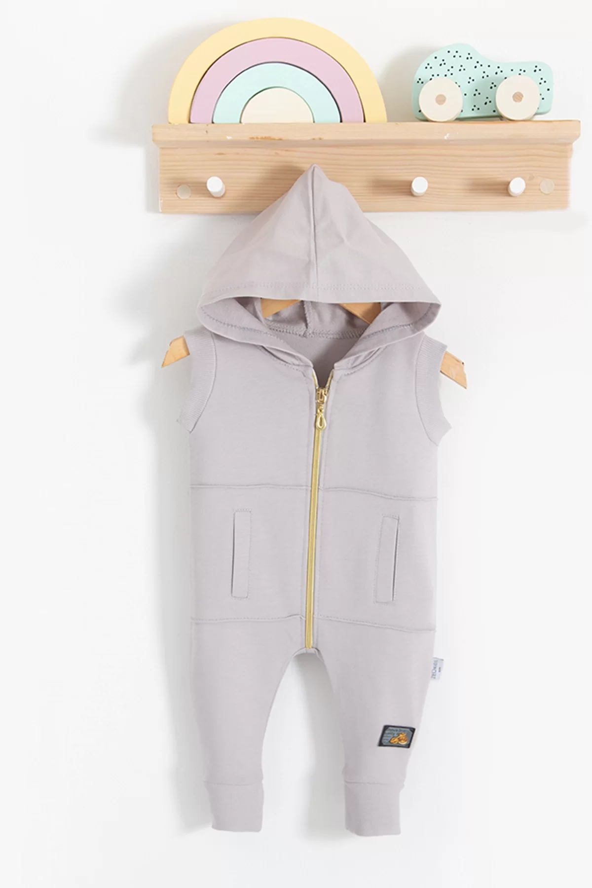 Cepli Kısa Kol Fermuarlı % 100 Pamuk Erkek Bebek Tulumu