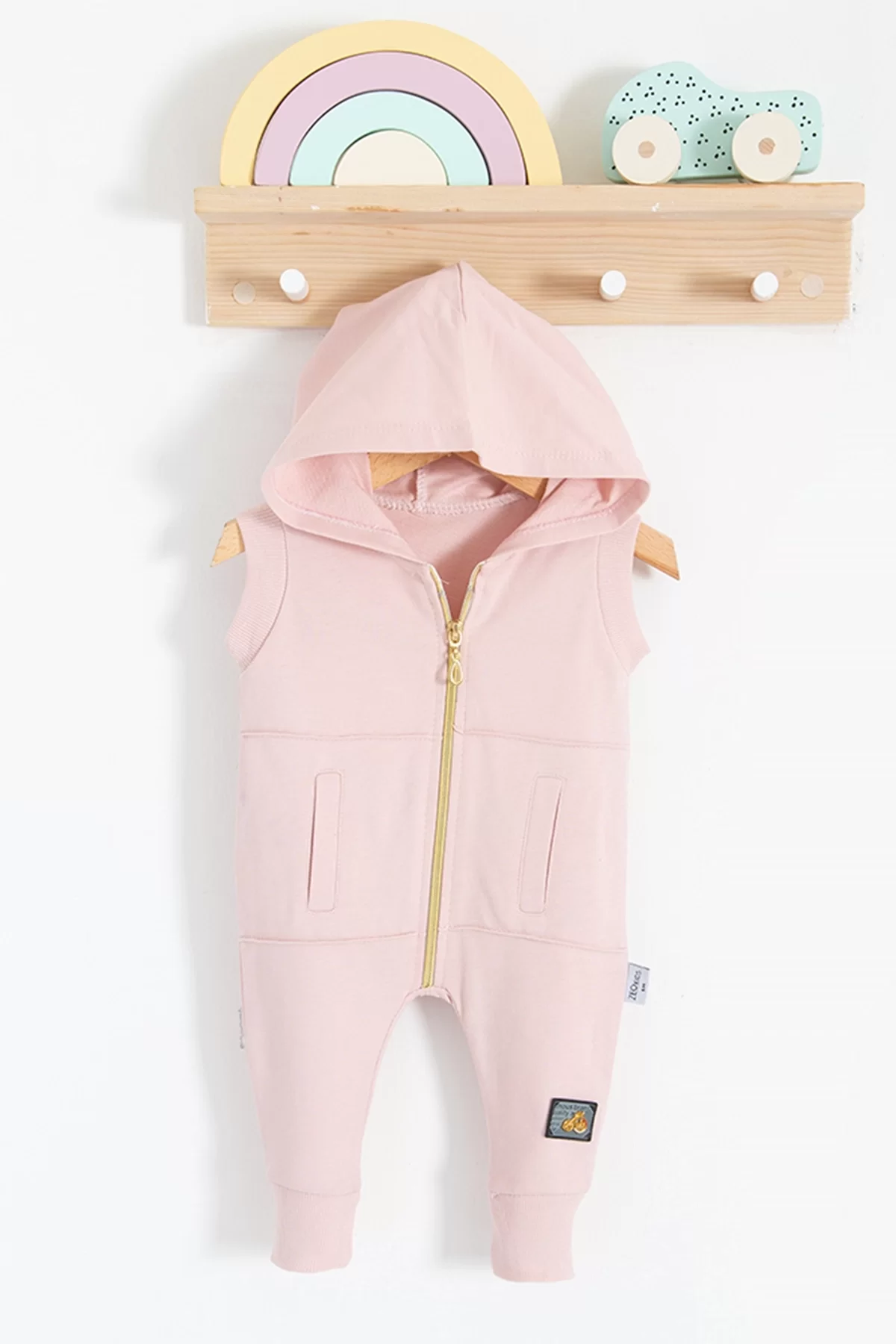 Cepli Kısa Kol Fermuarlı % 100 Pamuk Kız Bebek Tulumu