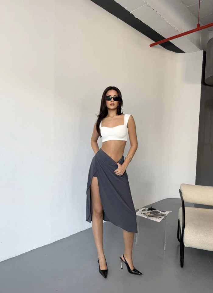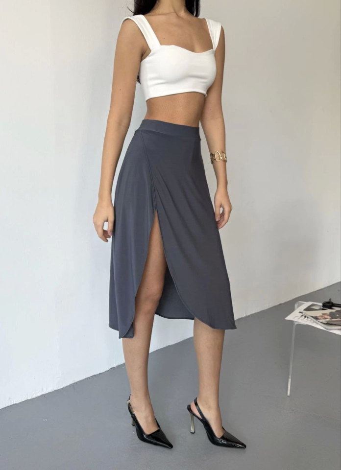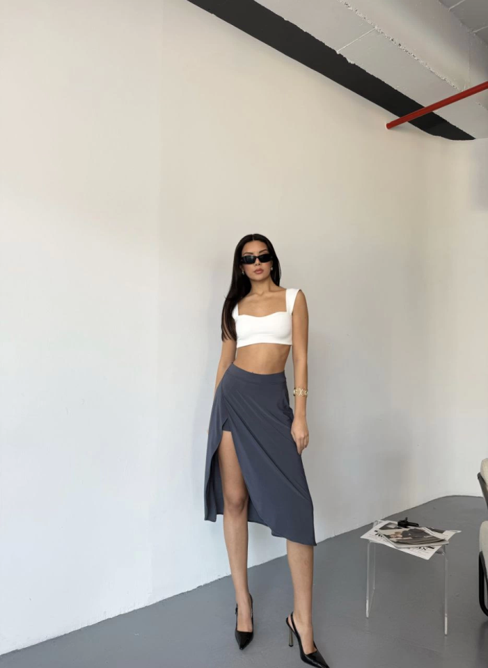 Çepli Şortlu Yırtmaçlı Etek – Gri