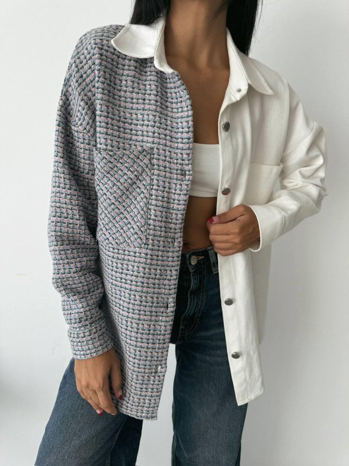 CHANEL PARÇALI GÖMLEK – Mavi-Ekru