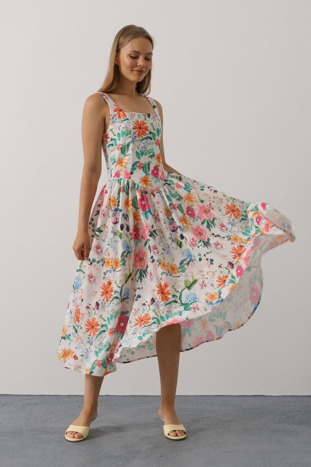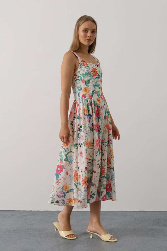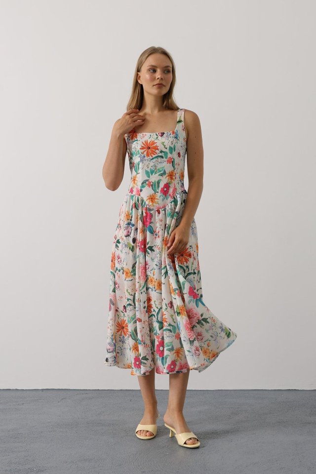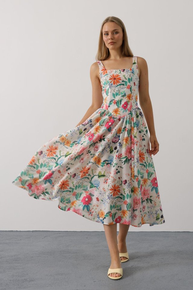 Çiçek Desenli Askılı Elbise – Pembe Çiçek