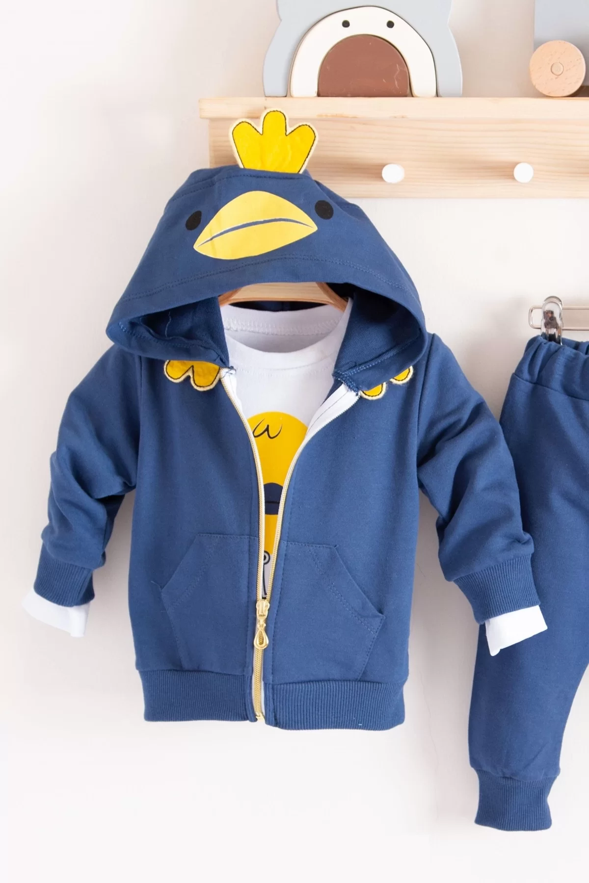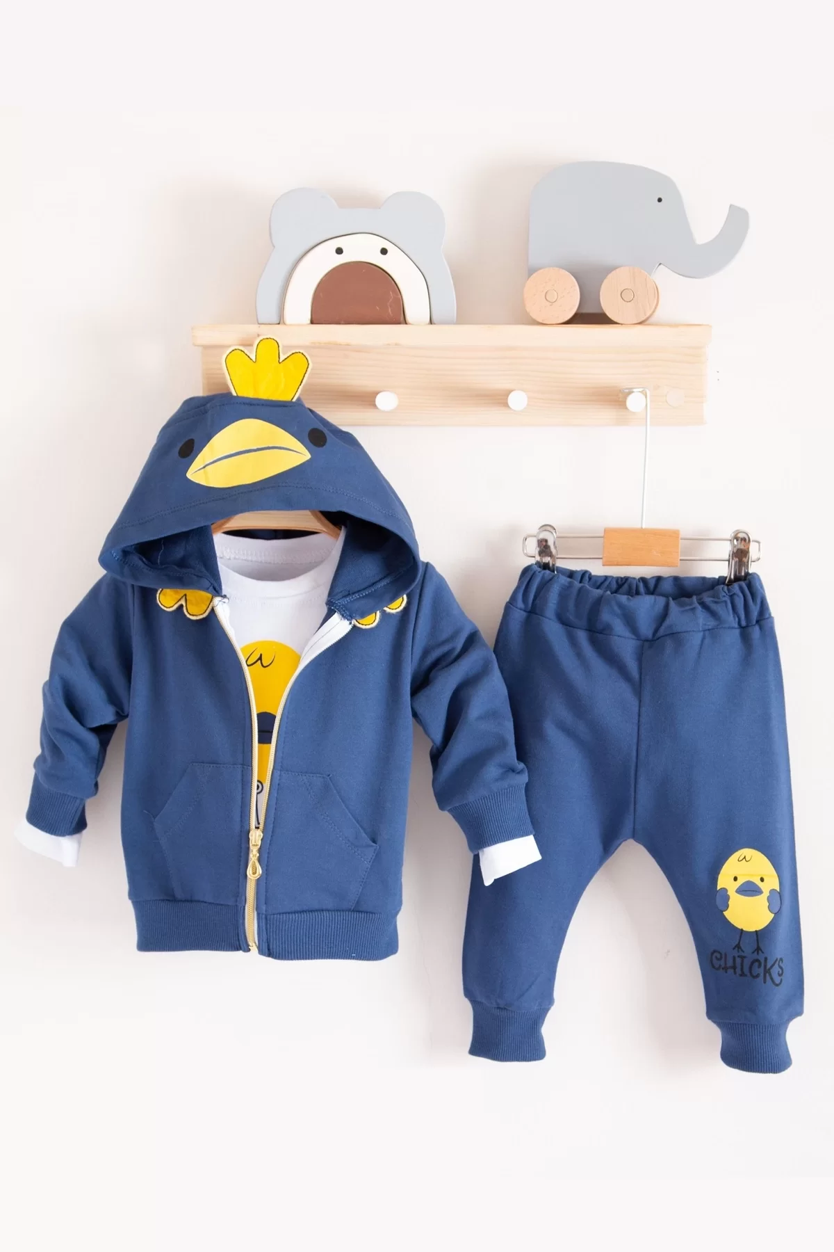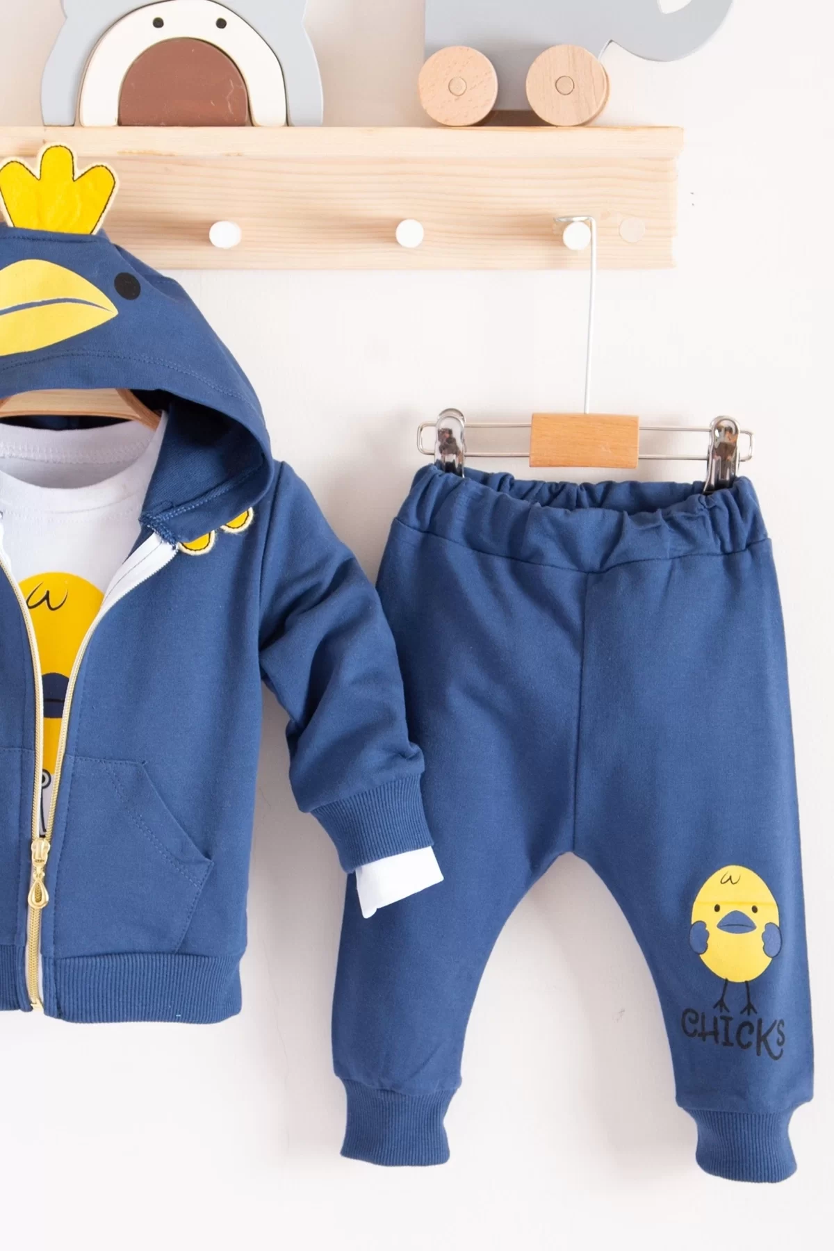 Civciv Desenli Kapişonlu 3’lü Erkek Bebek Takımı