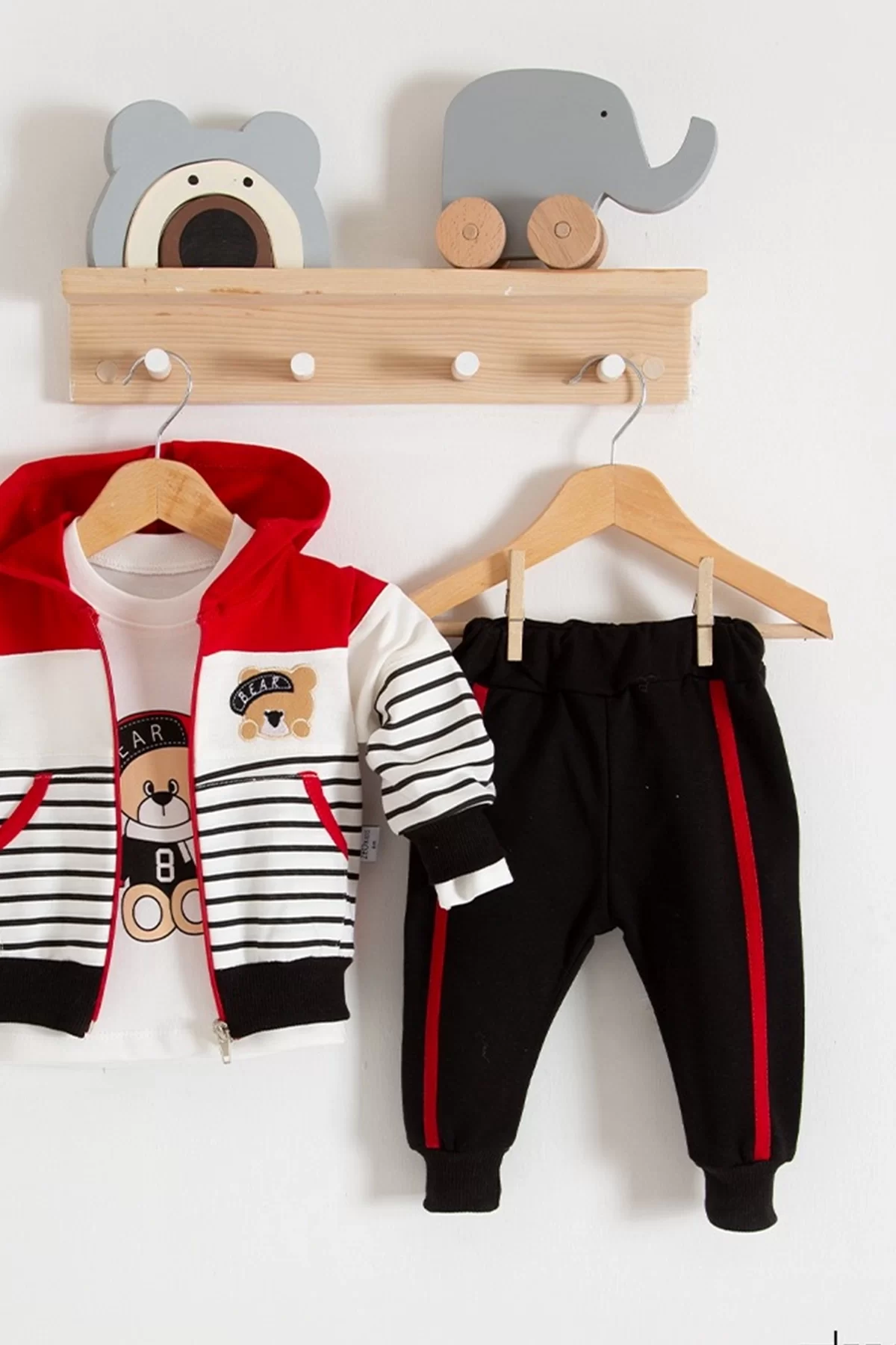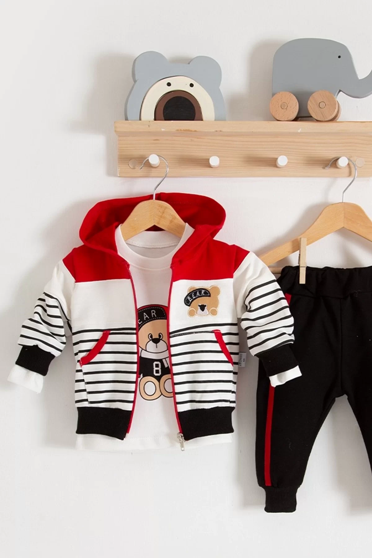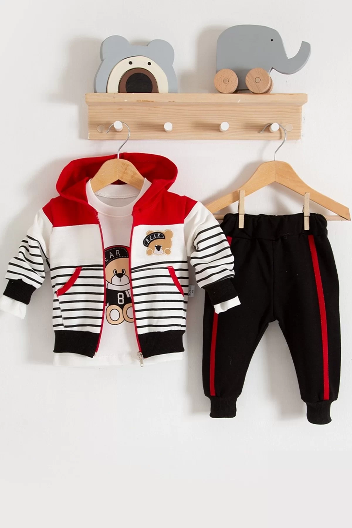 Çizgili Bear Desenli 3’lü Erkek Bebek Takımı