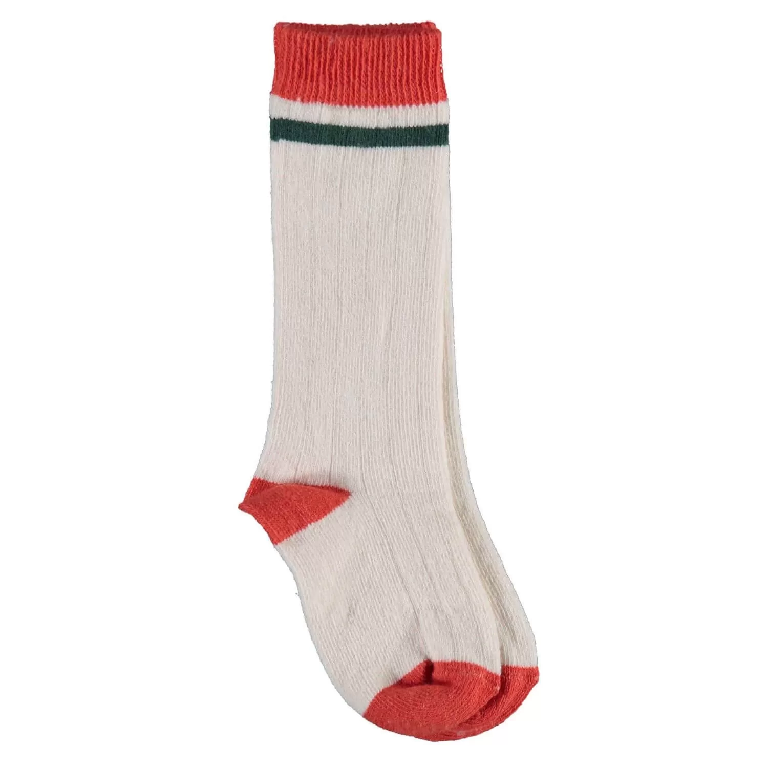 Çizgili Dizaltı Yaş Çorap Ekru Kiremit