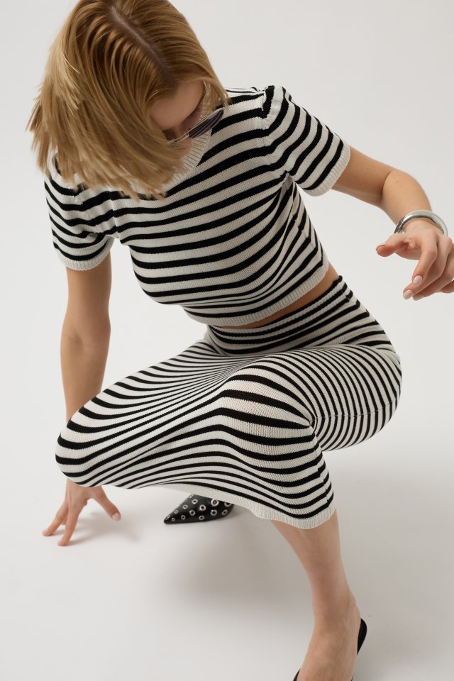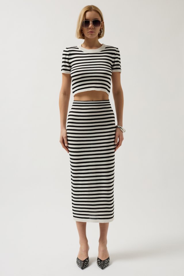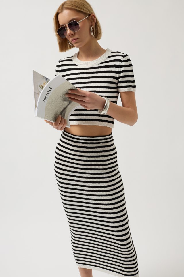 Çizgili Midi Dokulu Etek