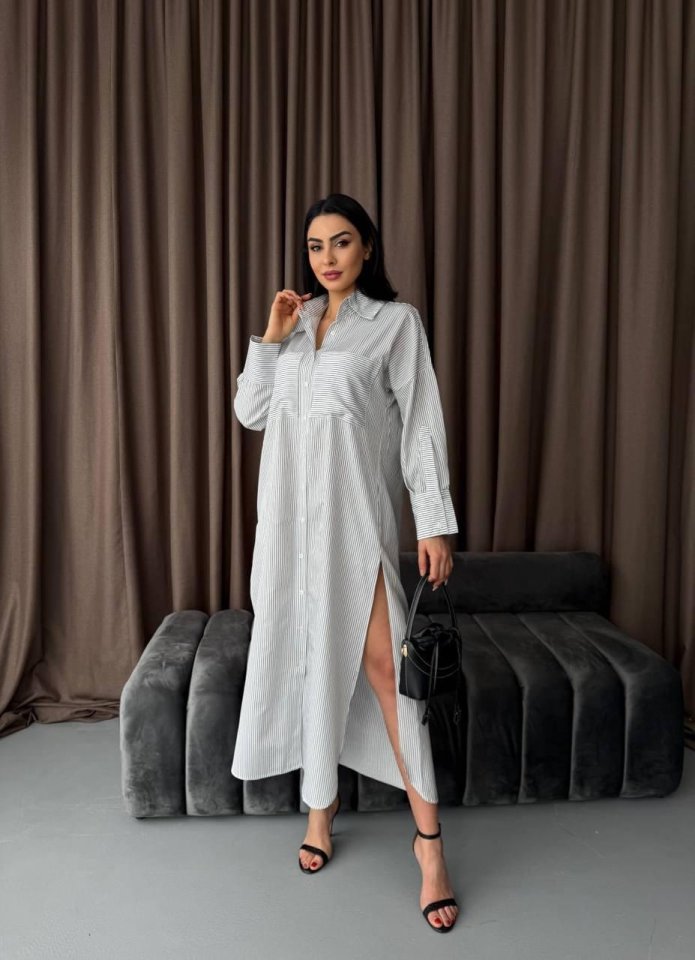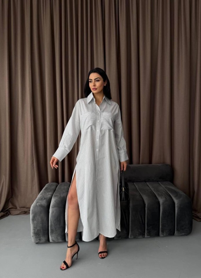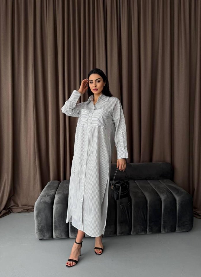 Çizgili Midi Gömlek Elbise
