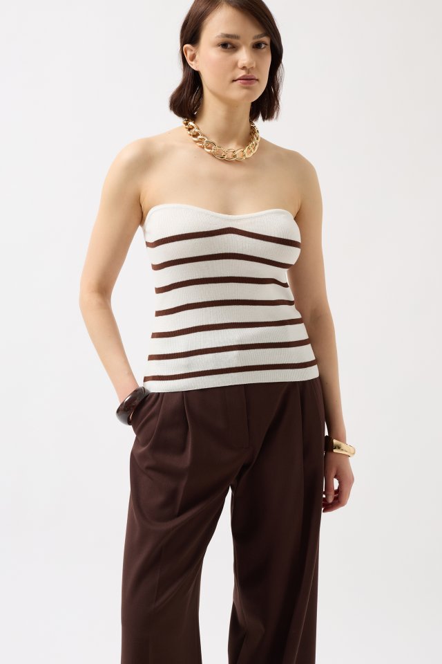 Çizgili Straplez Dokulu Bluz