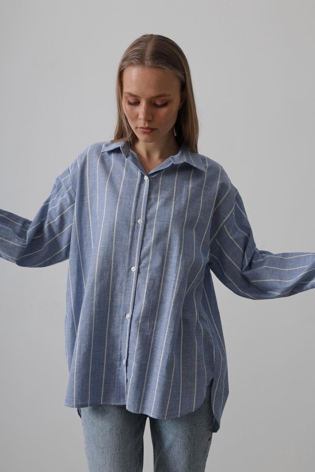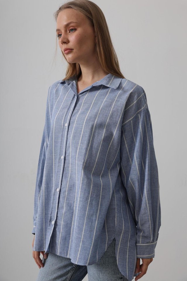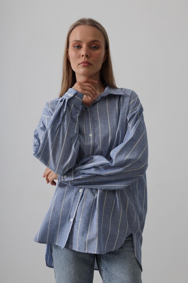 Çizgili Tunik Gömlek – Mavi Desen 1