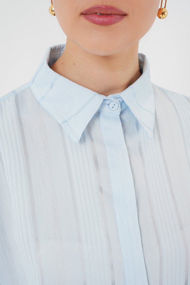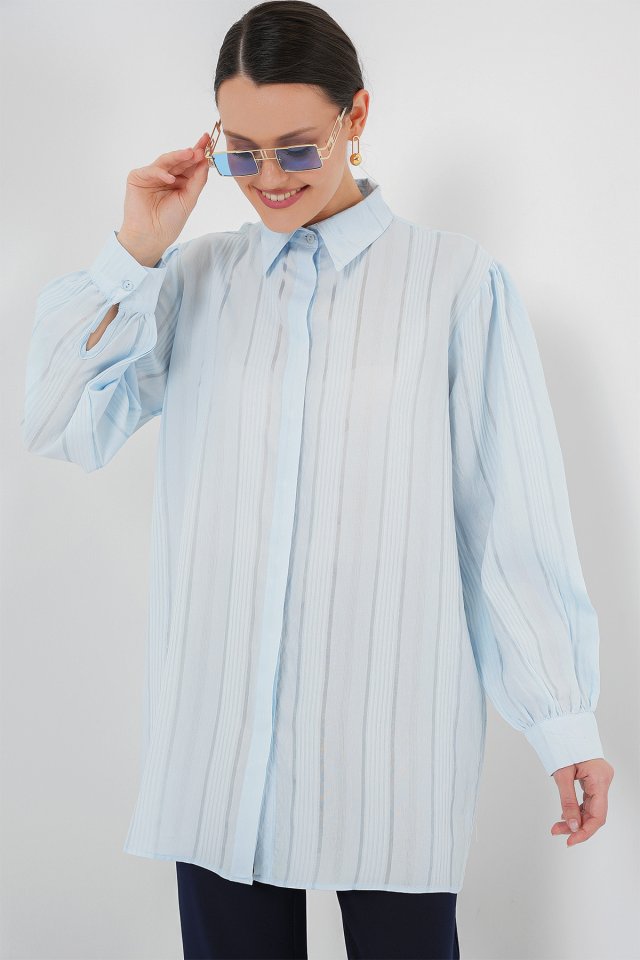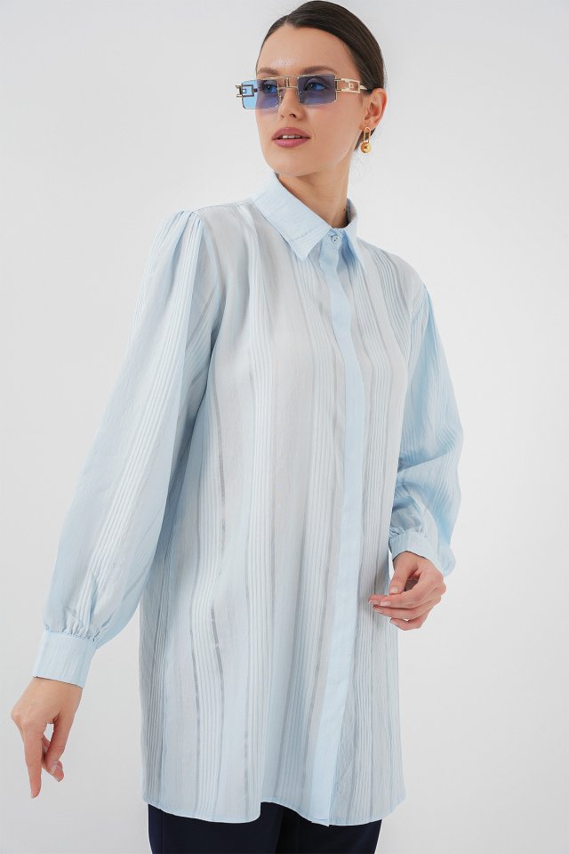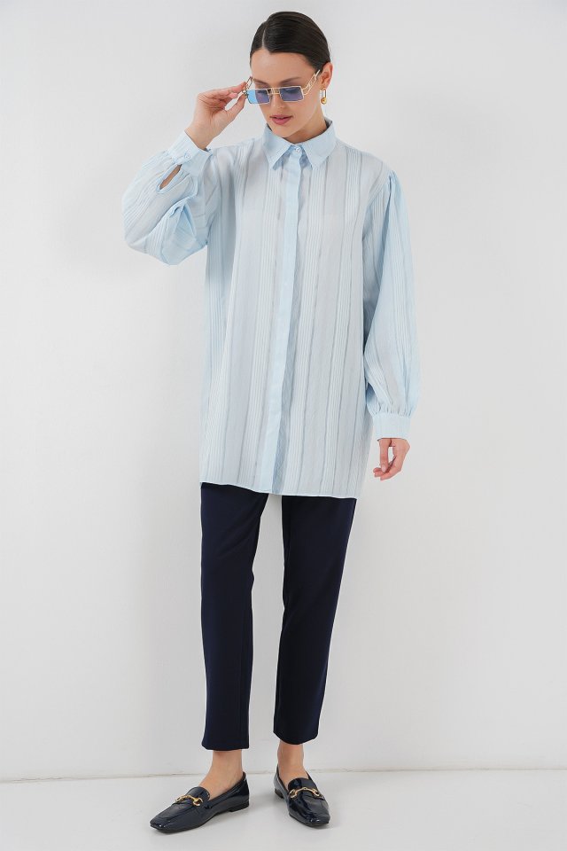 Çizgili Uzun Gömlek Tunik 5947 – Mavi