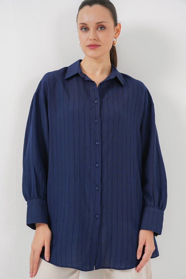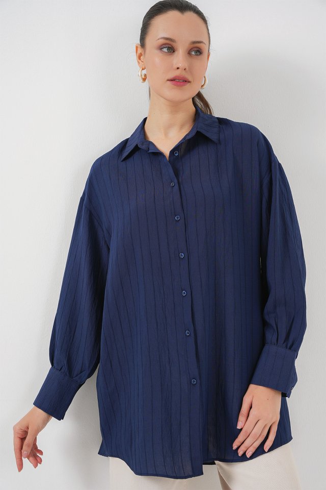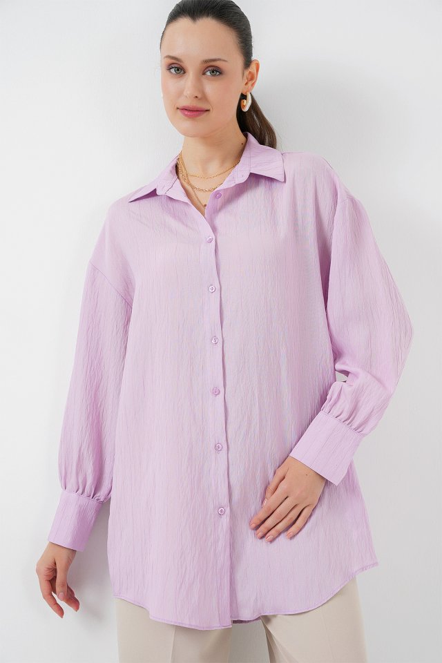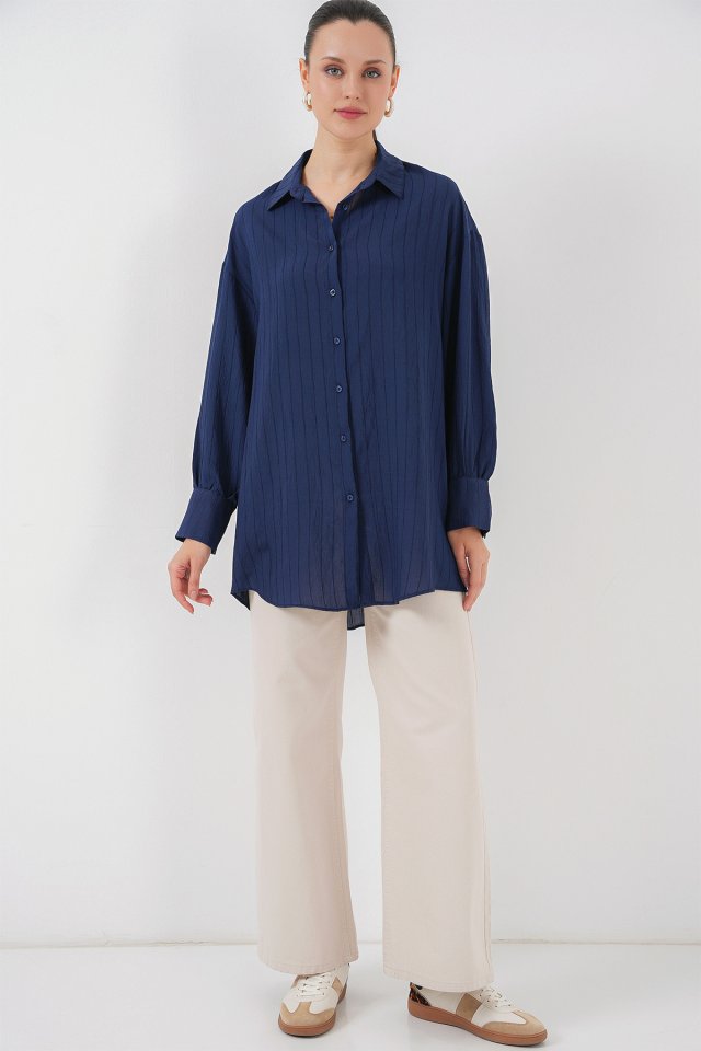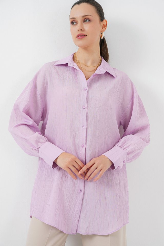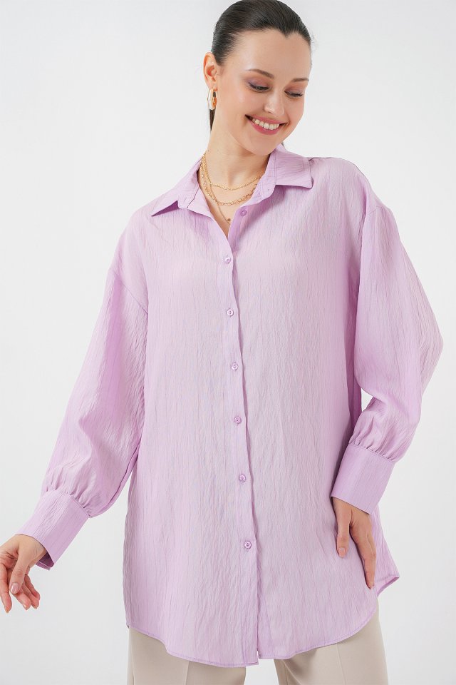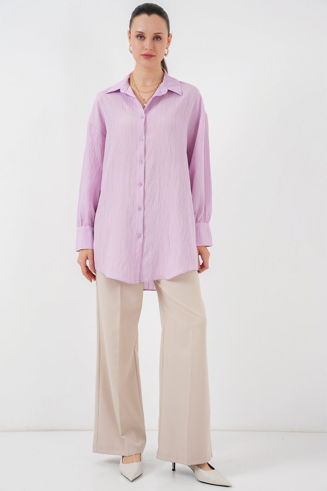 Çizgili Uzun Gömlek Tunik 5963 – Lila
