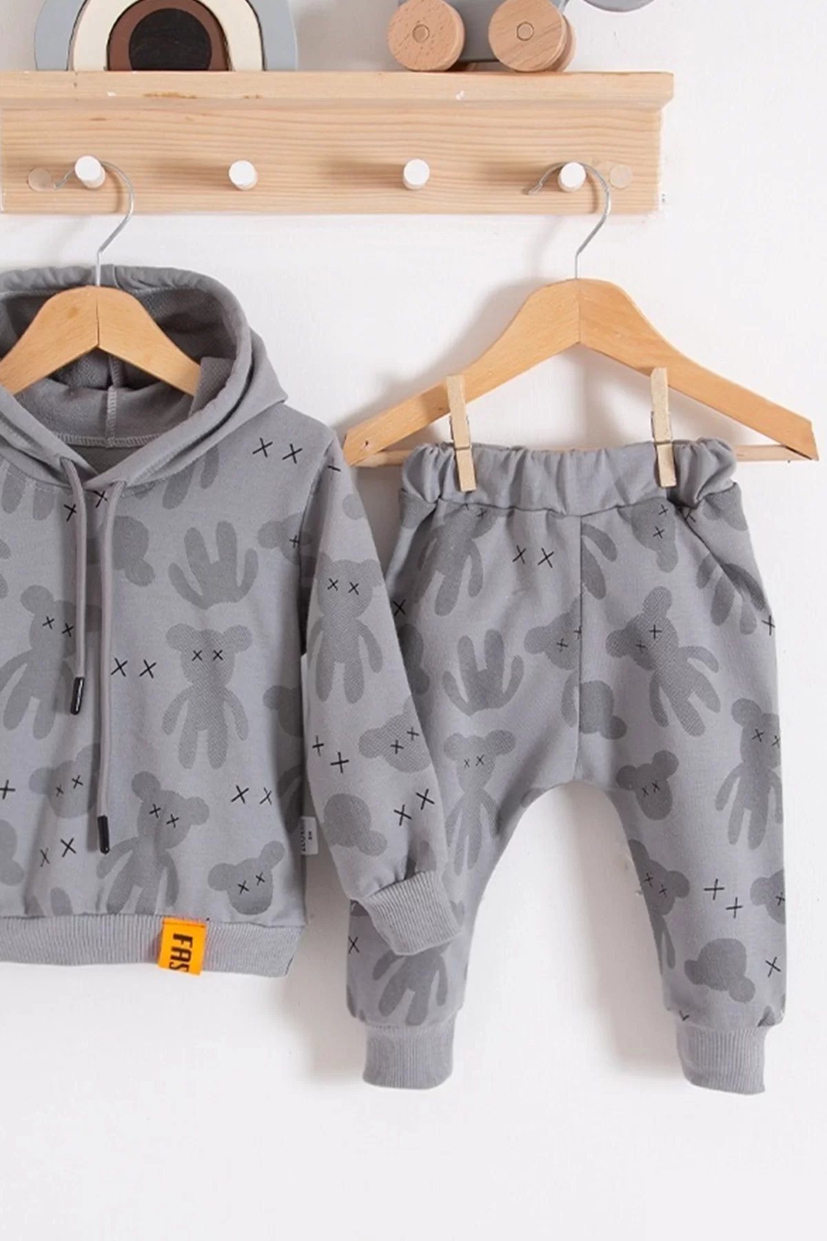 Cool Bear Kapüşonlu % 100 Pamuk Erkek Bebek Takımı.