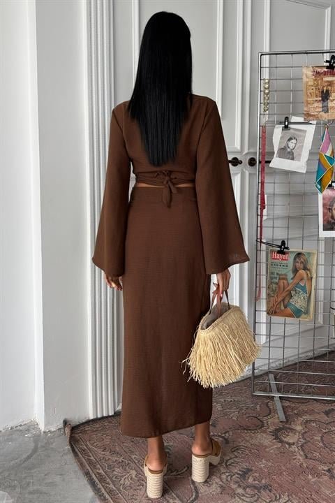 Crop Gömlekli Ve Eteği Büzgülü Tasarım Takım 10195