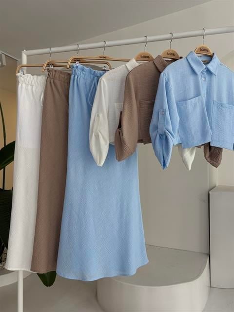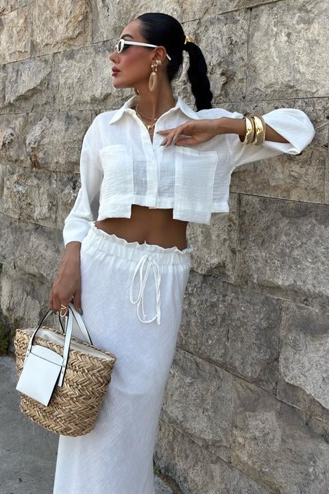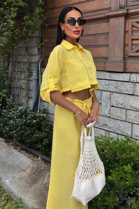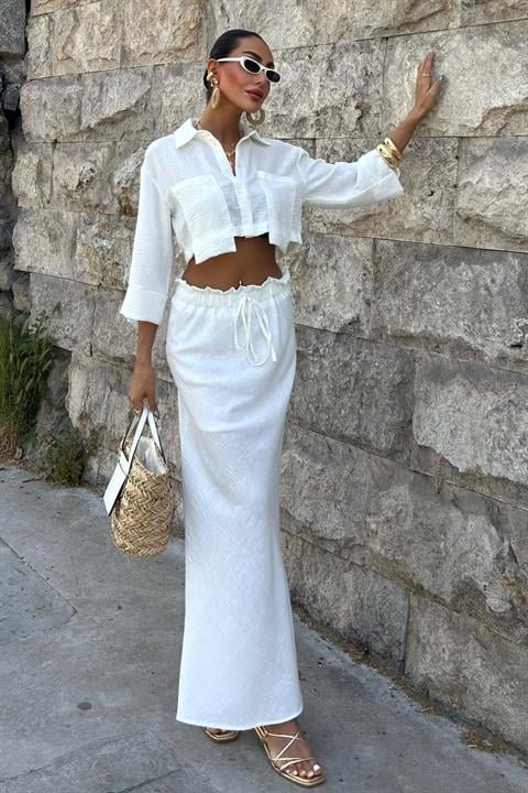 Crop Gömlekli Ve Eteği Büzgülü Tasarım Takım 10201