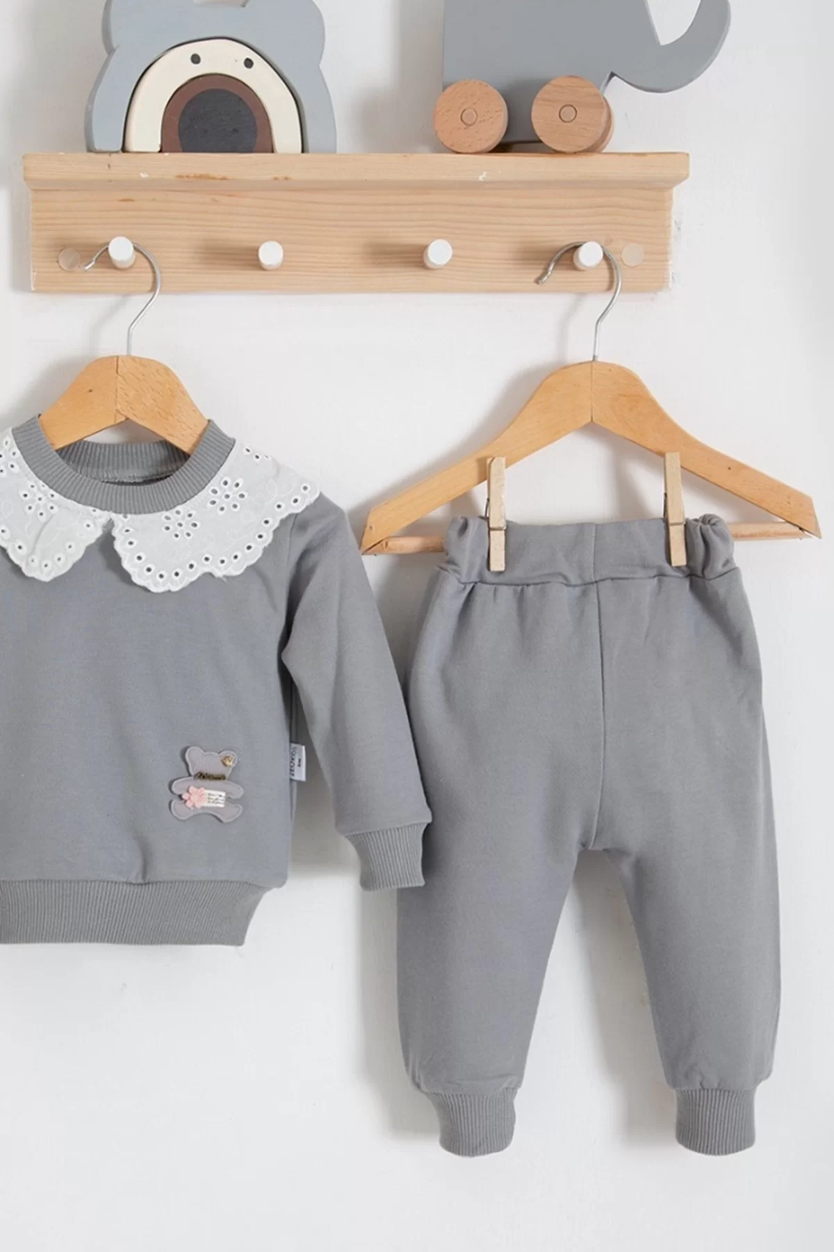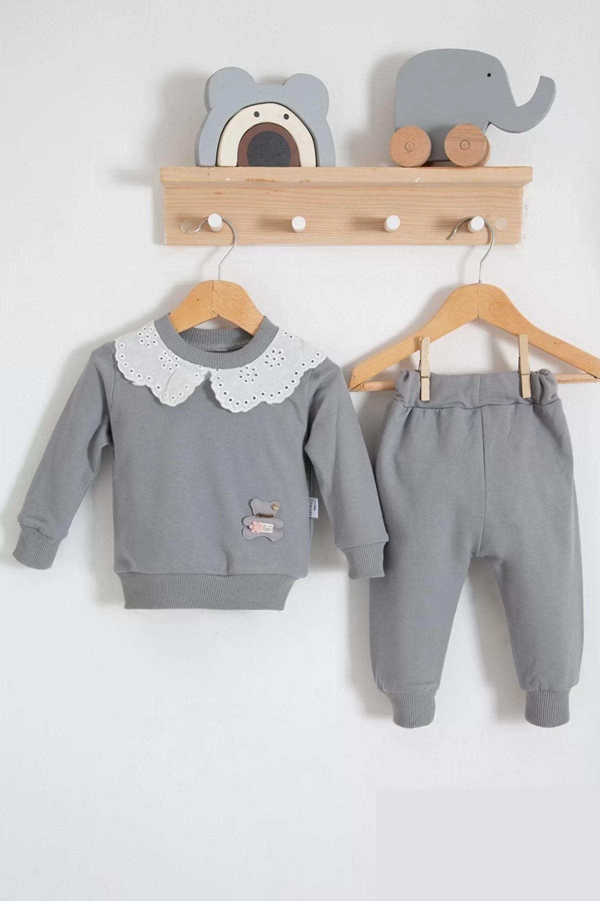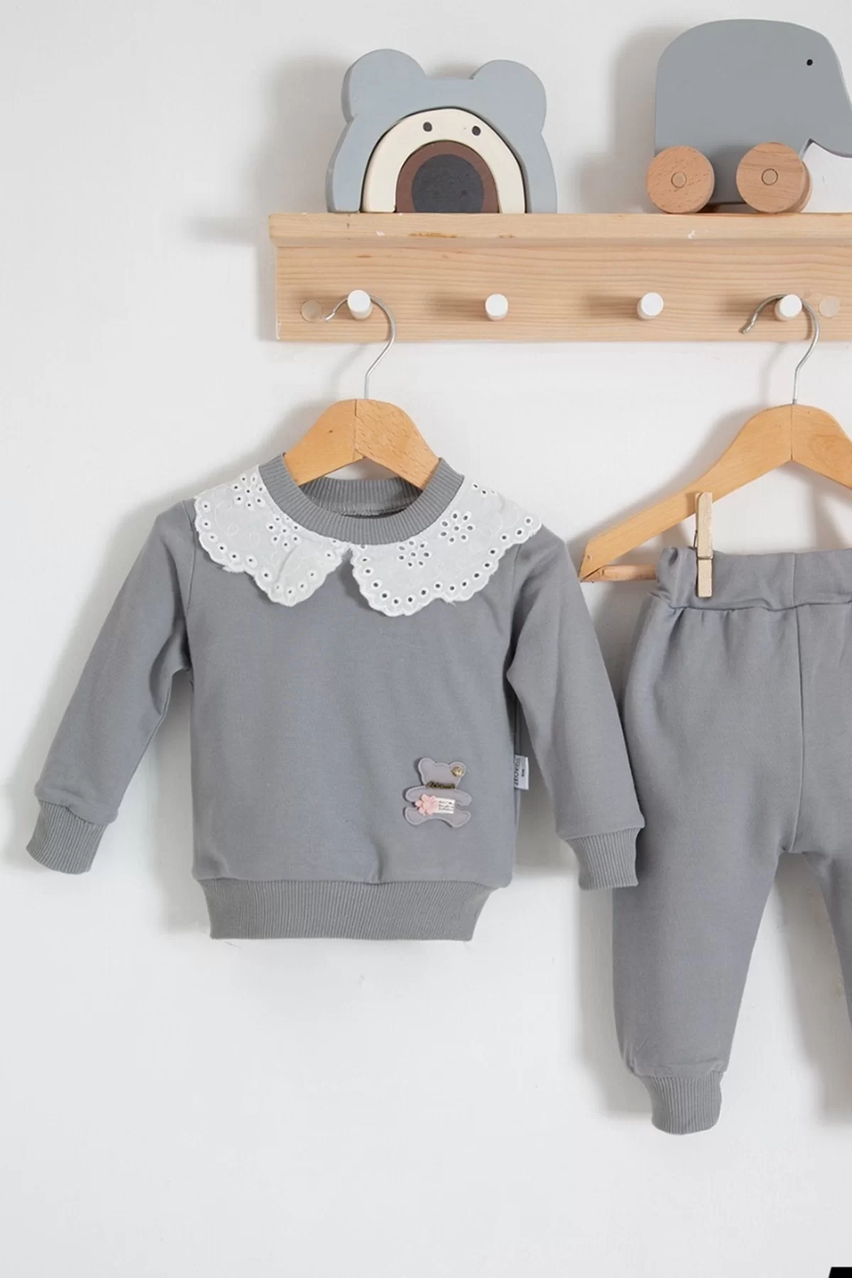 Dantel Yakalı Pamuklu 2’li Kız Bebek Takımı