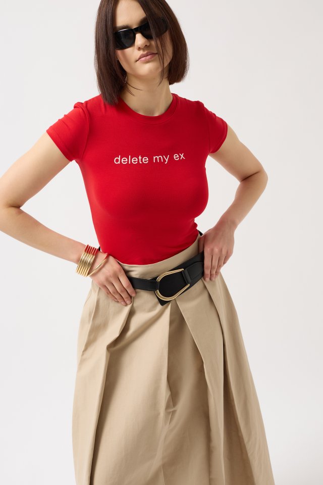 Delete My Ex Baskılı Likralı Crop T-Shirt