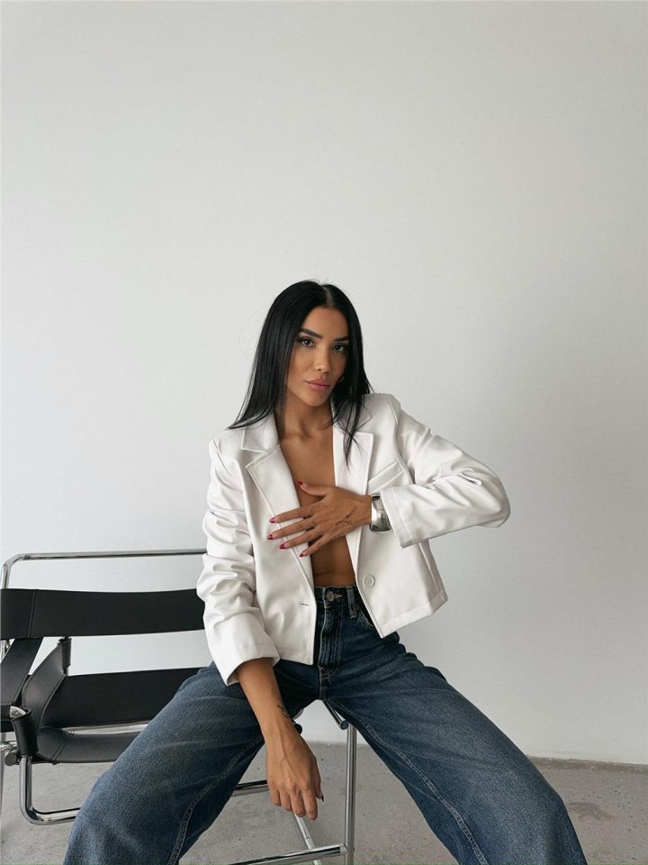 DERİ CROP CEKET TEK DÜĞME – Beyaz