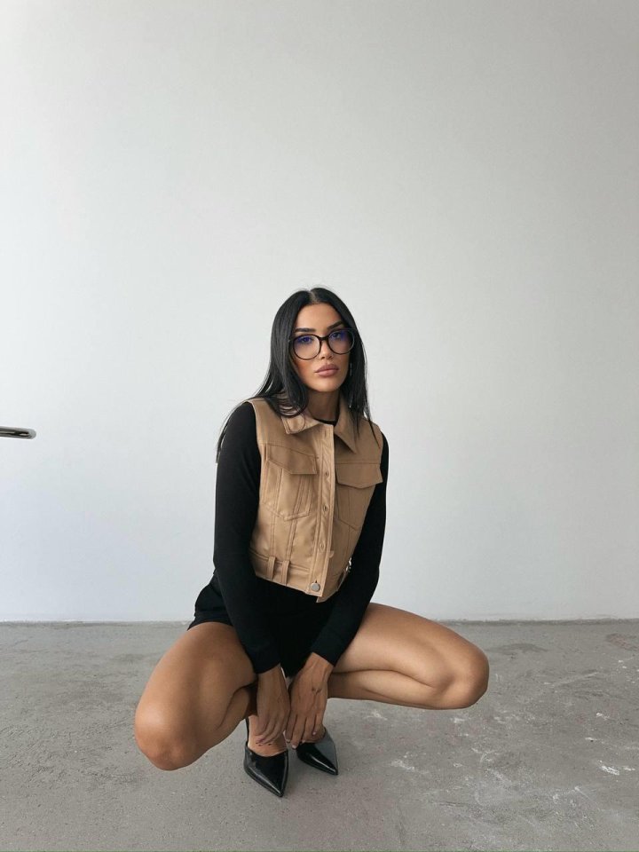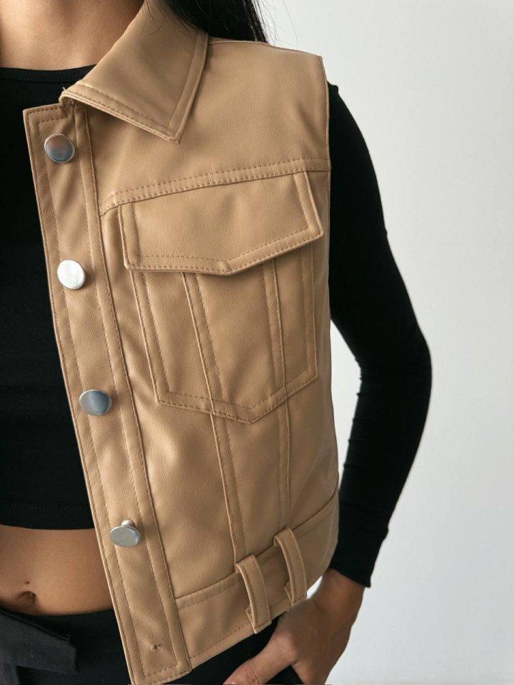 DERİ CROP YELEK – Bej