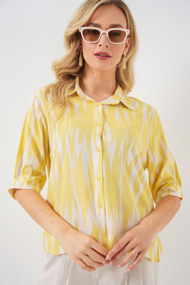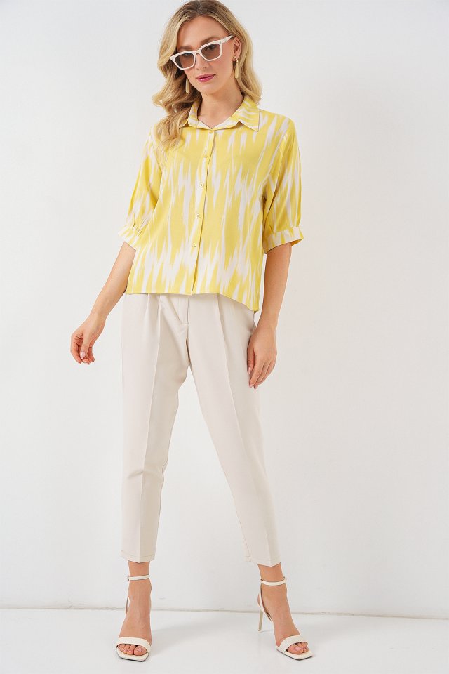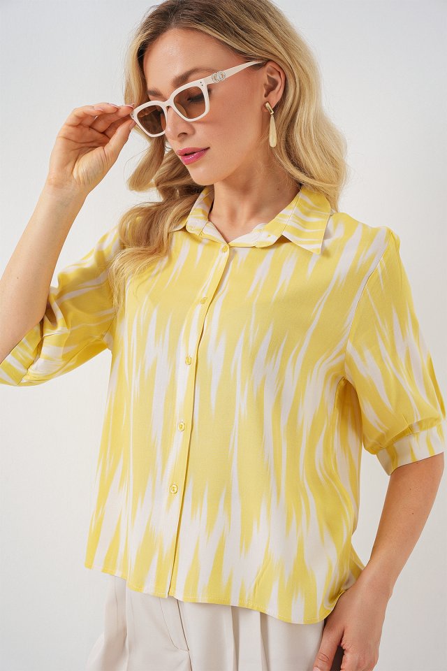 Desenli Kısa Kol Crop Gömlek 20337 – Sarı