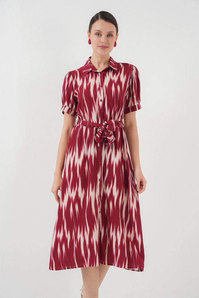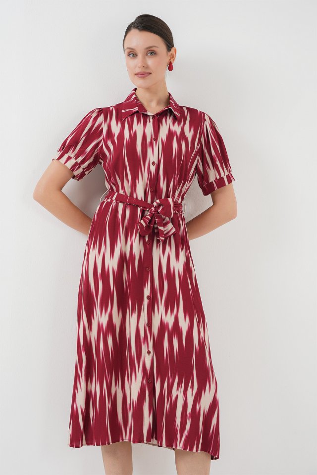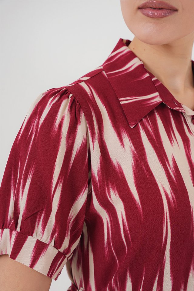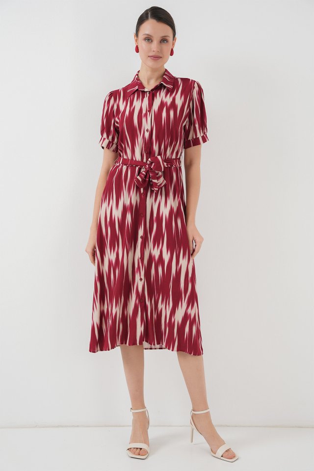 Desenli Kısa Kol Elbise 2532 – Bordo