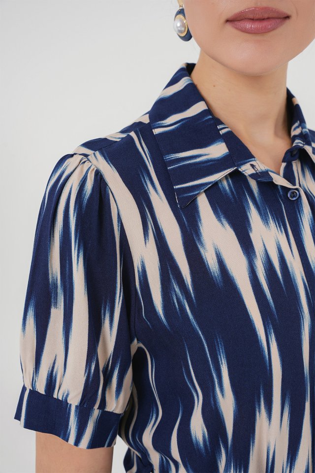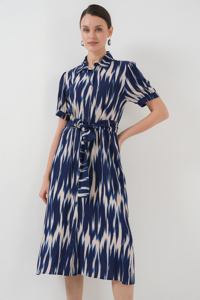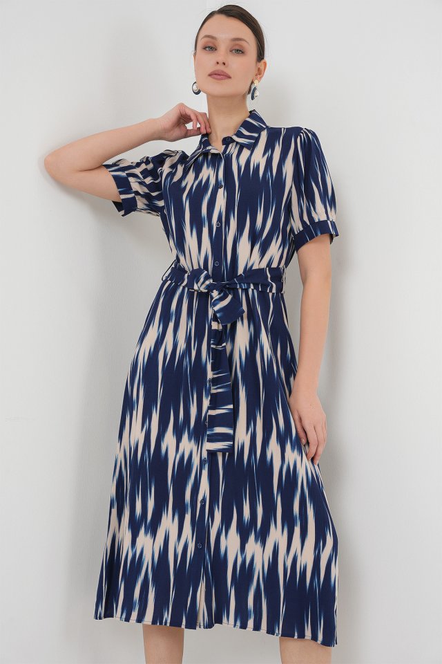 Desenli Kısa Kol Elbise 2532 – Lacivert