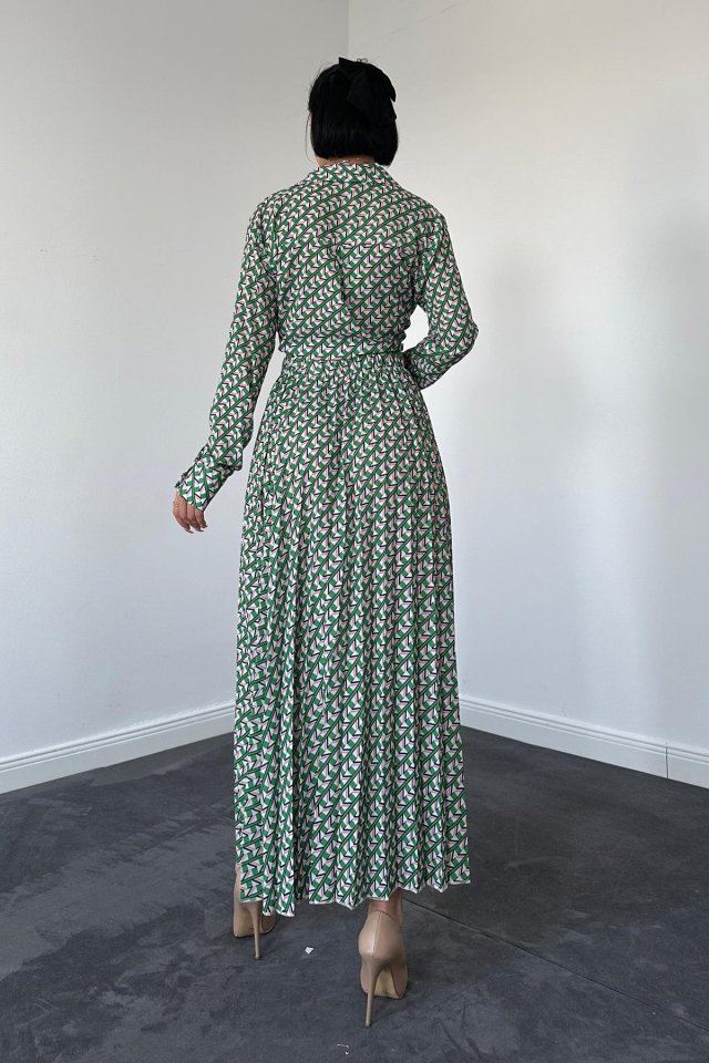 Desenli Viskon Gömlek Ve Etek Takım – Yeşil