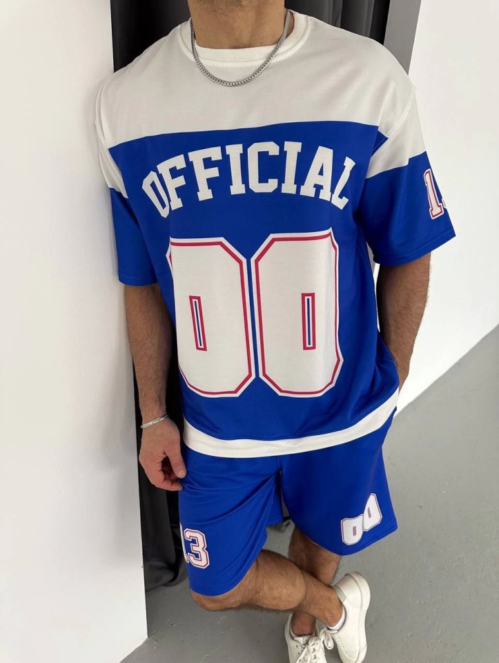 Dijital 00 Baskılı Şortlu Takım – Mavi