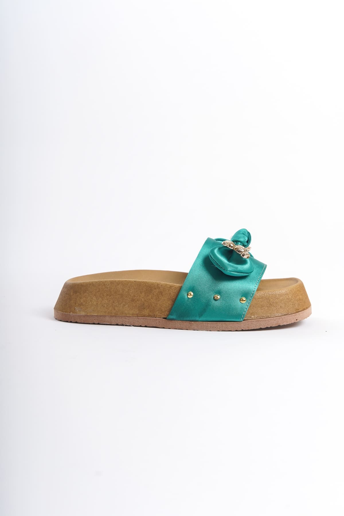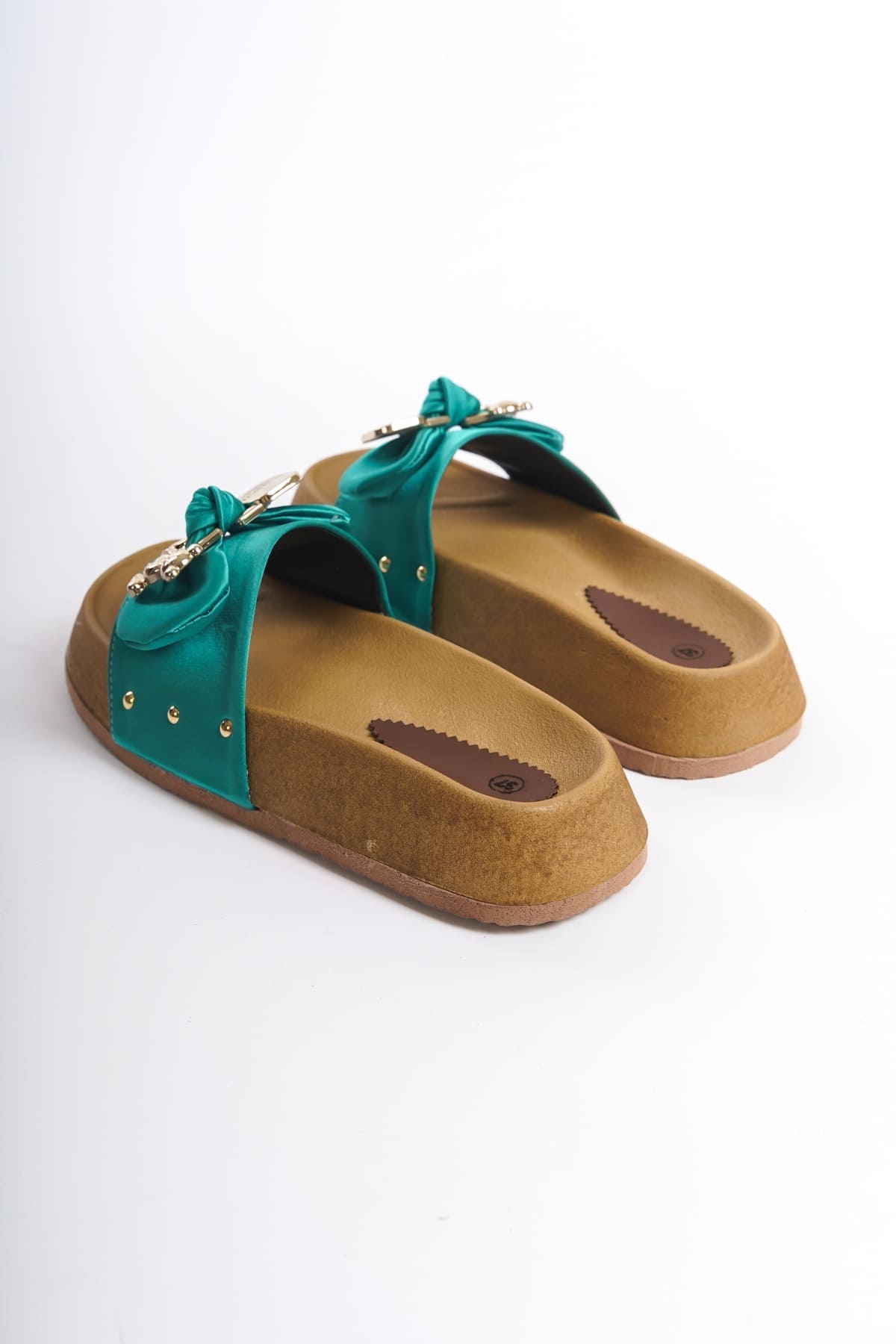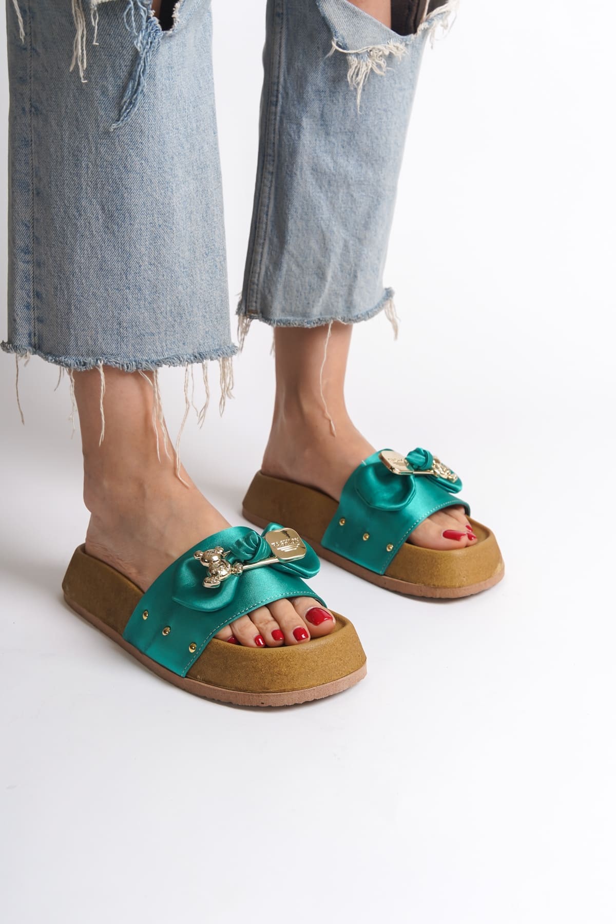 DILA Kalın ve Ortopedik Taban Ayıcıklı Saten Kadın Terlik SKT – Yeşil