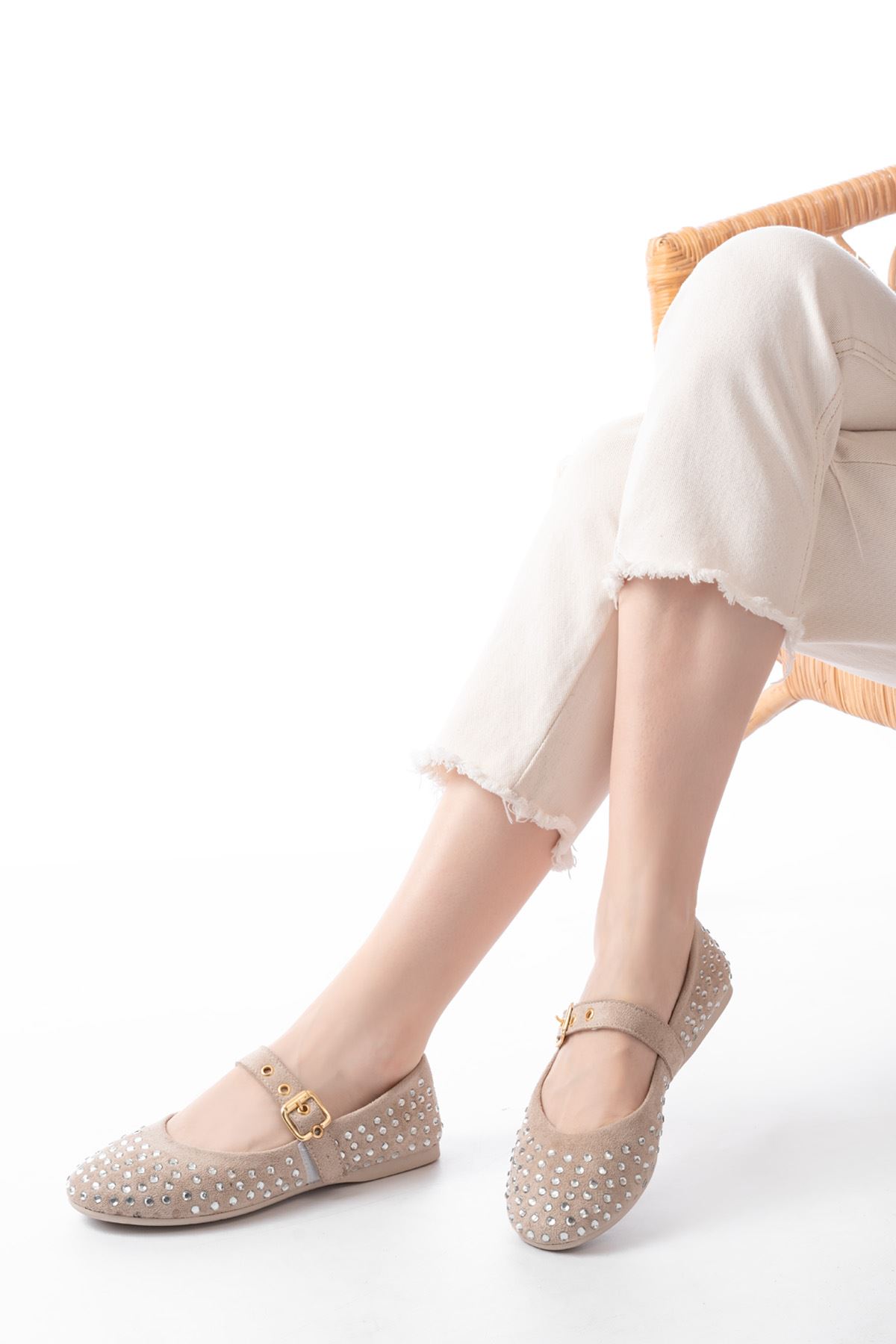 DM-6020 Bej Troklu Baret Tokalı Günlük Kadın Babet