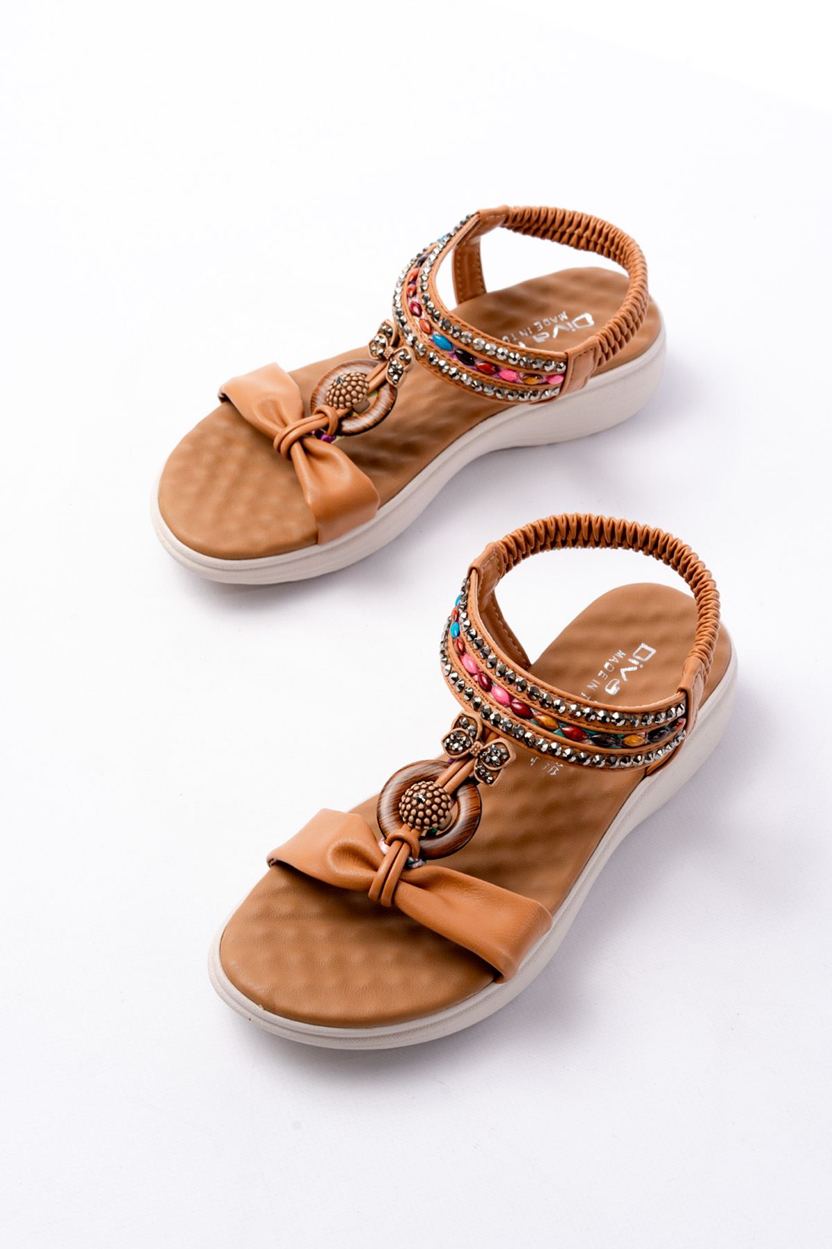 DM-608 Taba Taşlı Arka Lastikli Günlük Kadın Sandalet