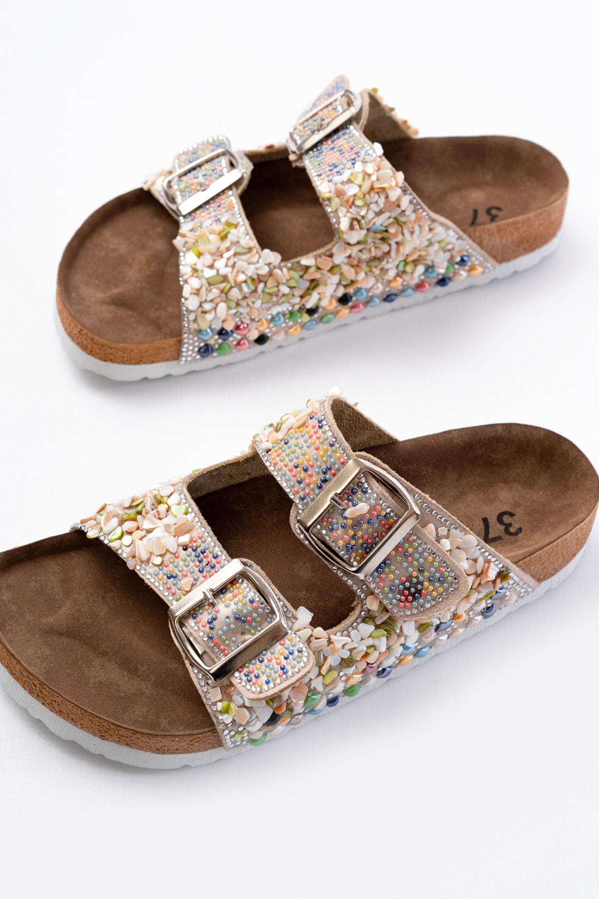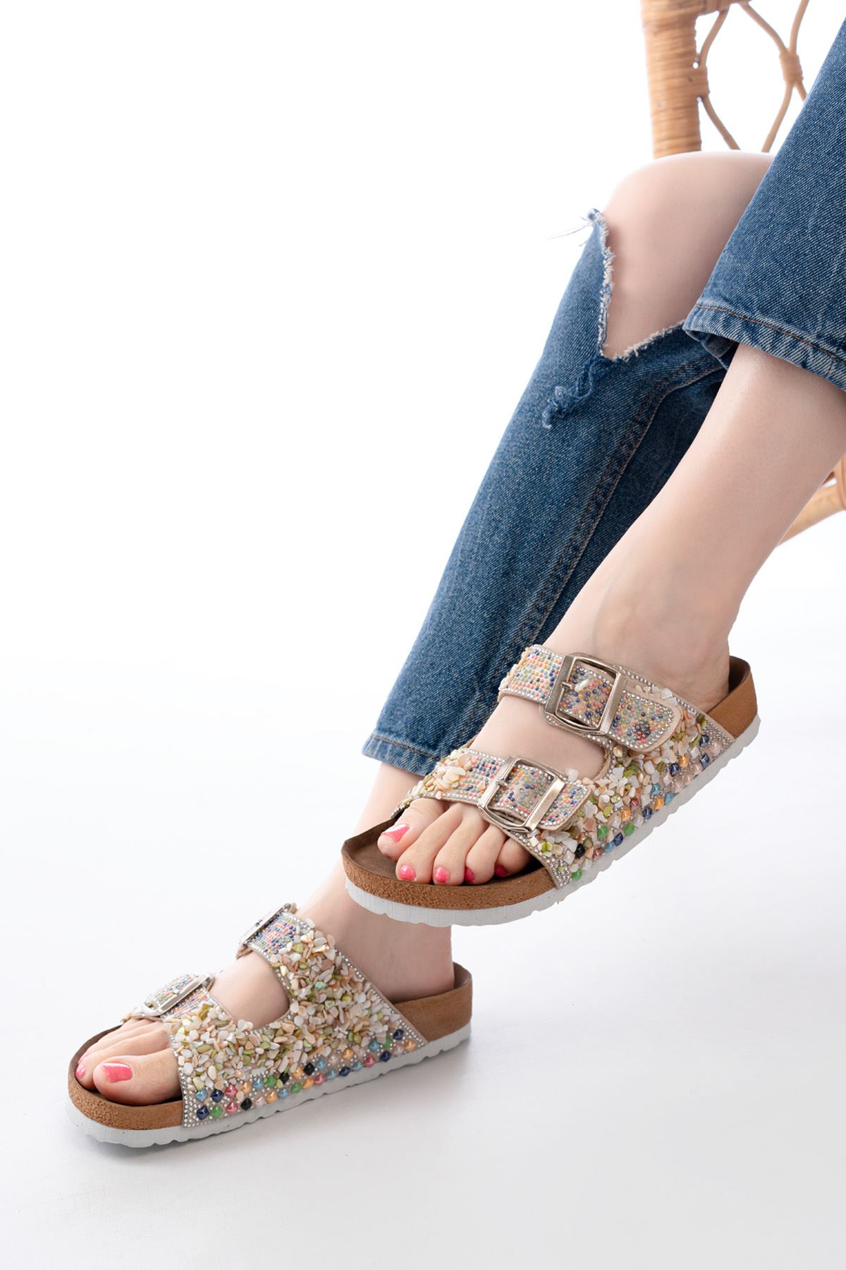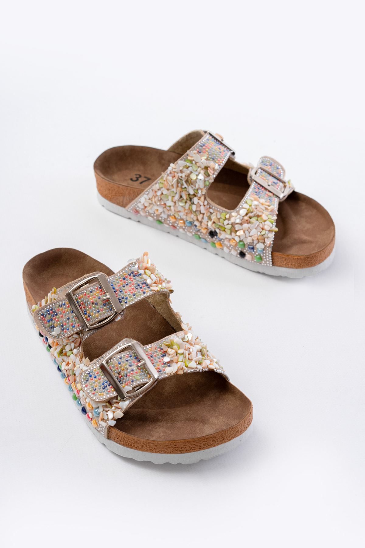 DN-07 Bej Günlük Taş Aksesuarlı Kadın Terlik adet