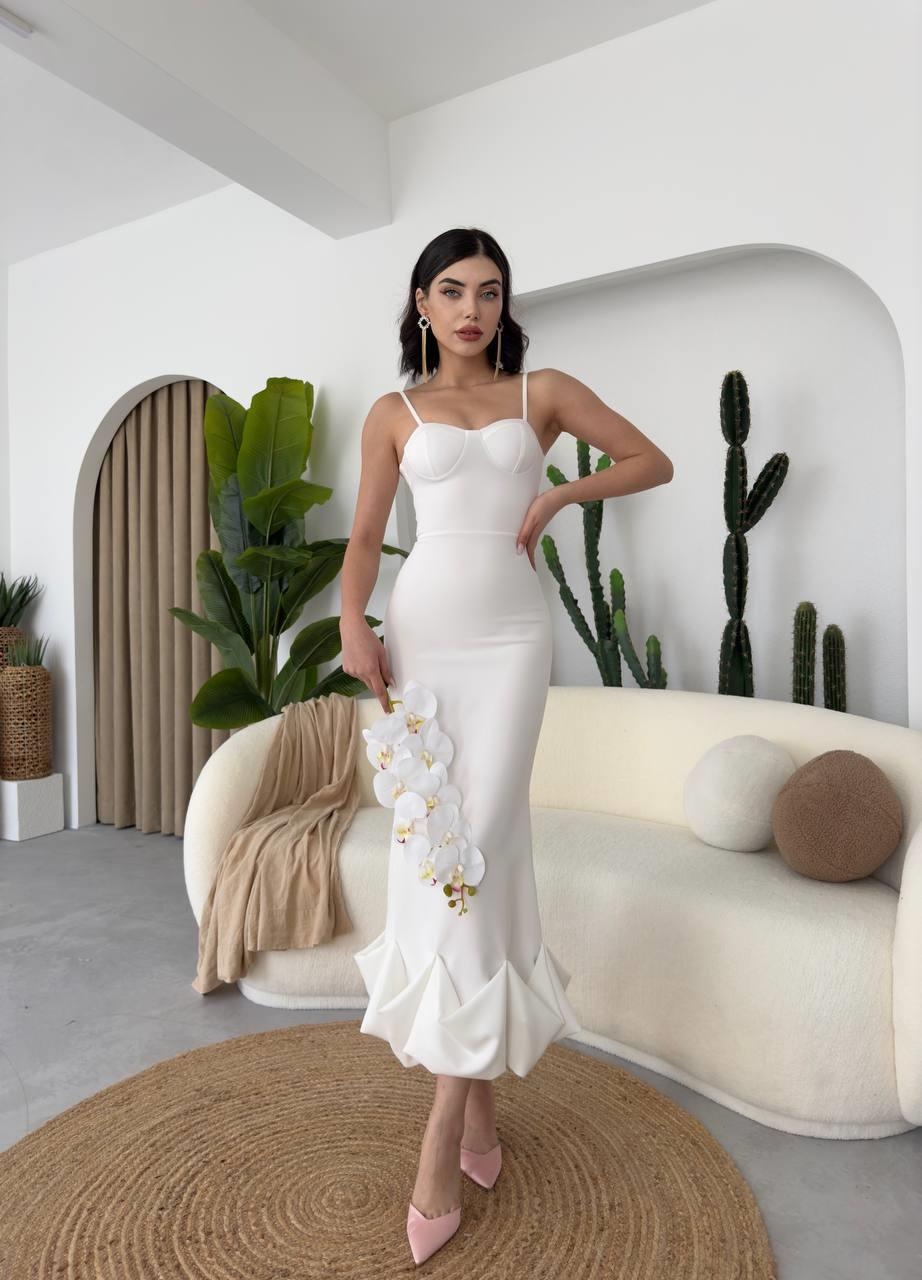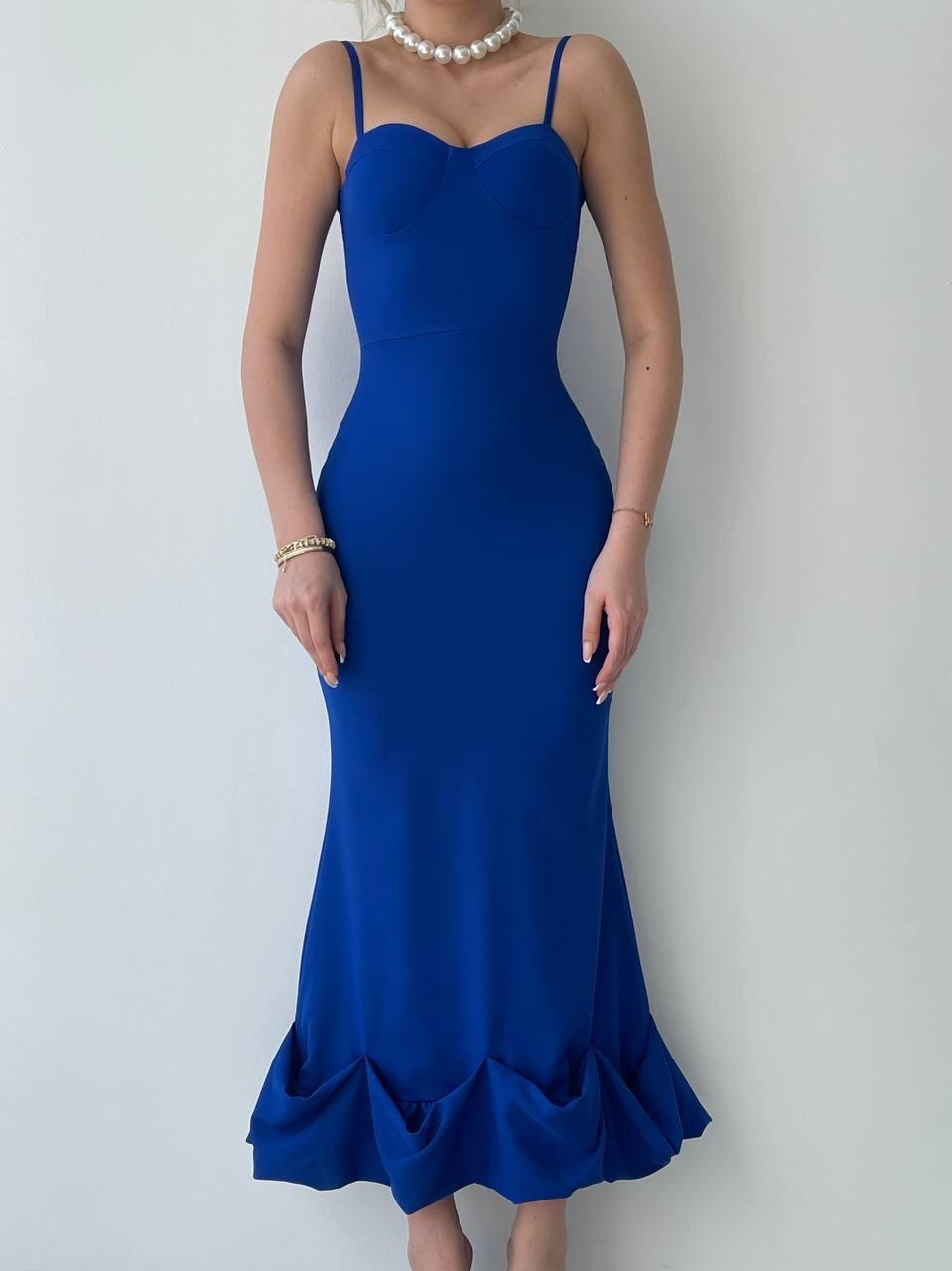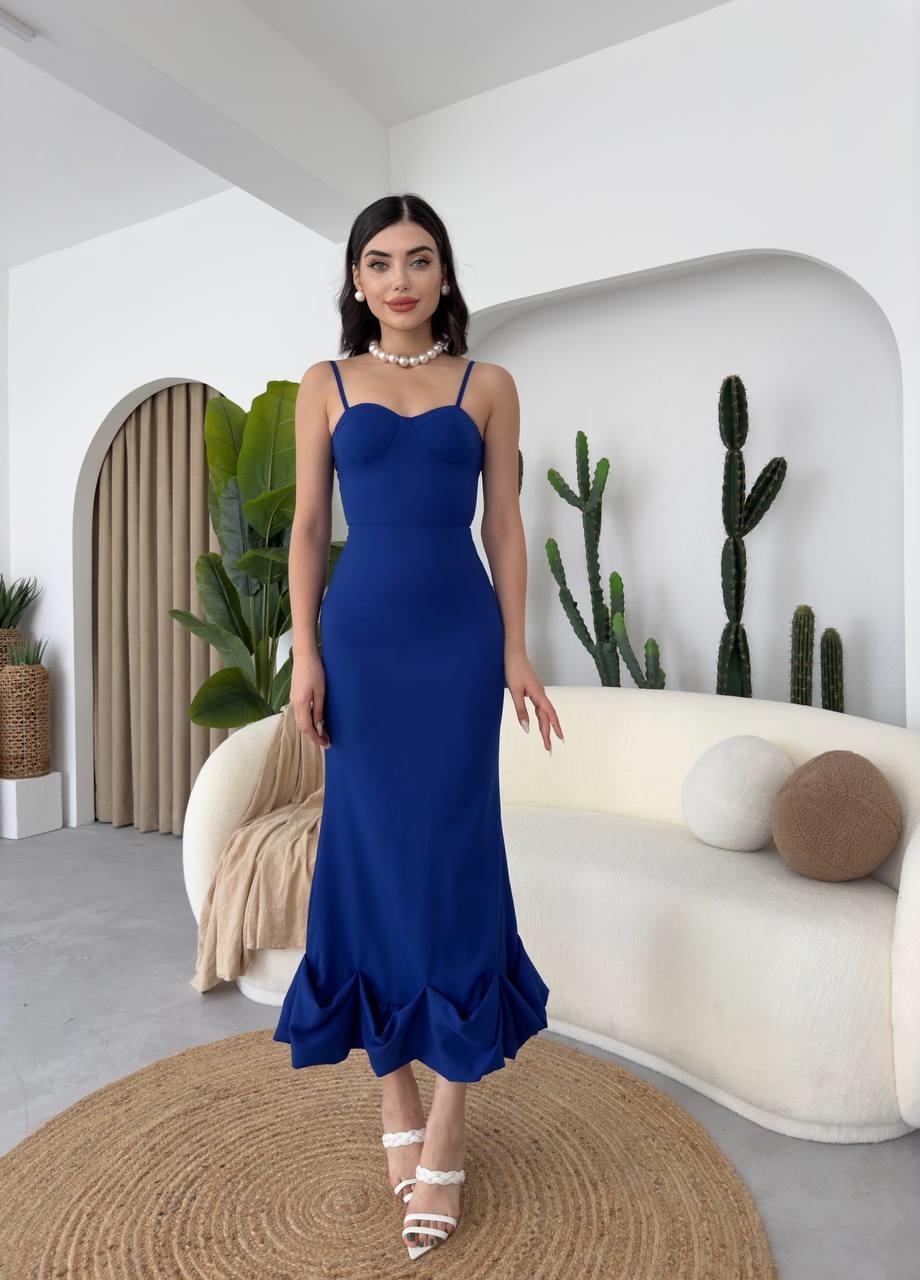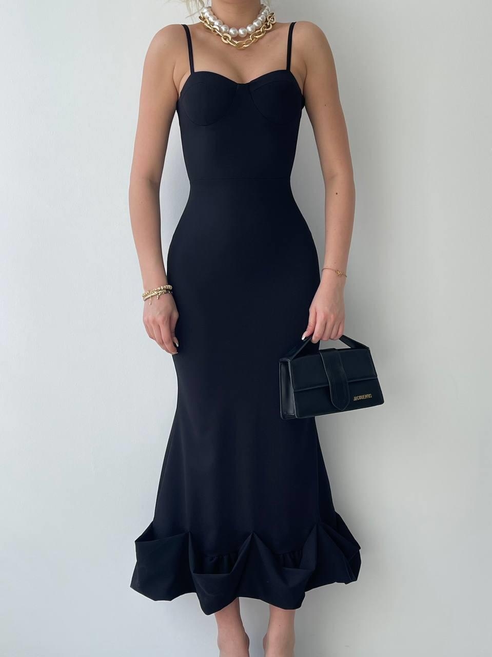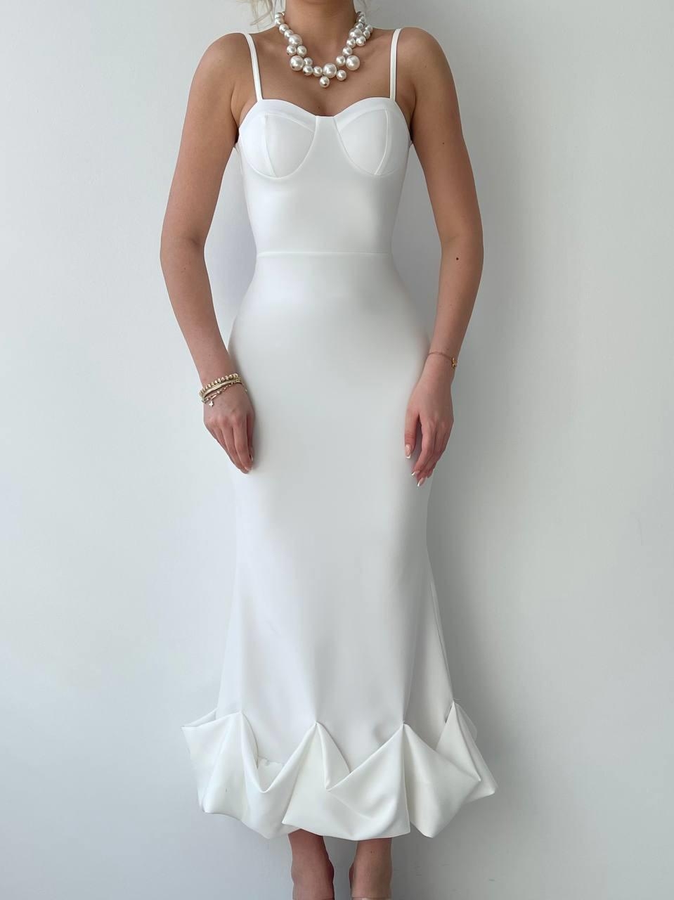 Dominic Eteği Büzgülü Midi Boy Elbise