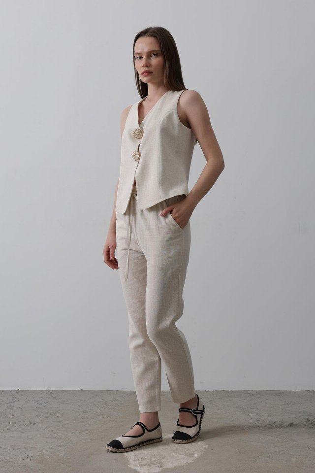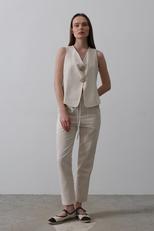 Düğme Detaylı Yelek – Krem