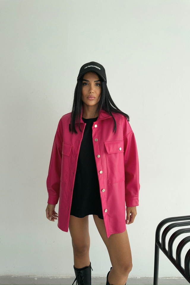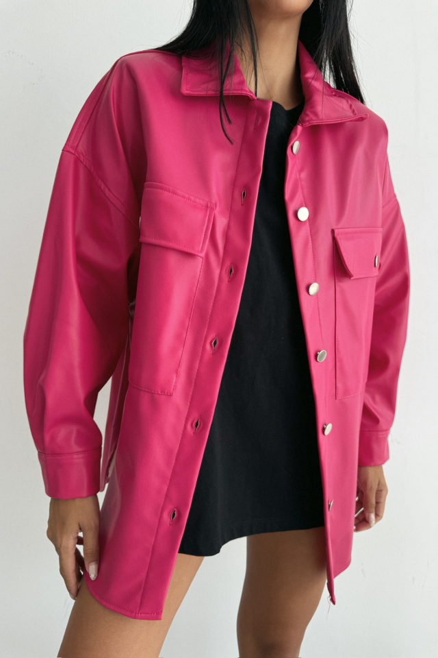 DÜĞMELİ DERİ GÖMLEK BOYFRİEND – Fuşya