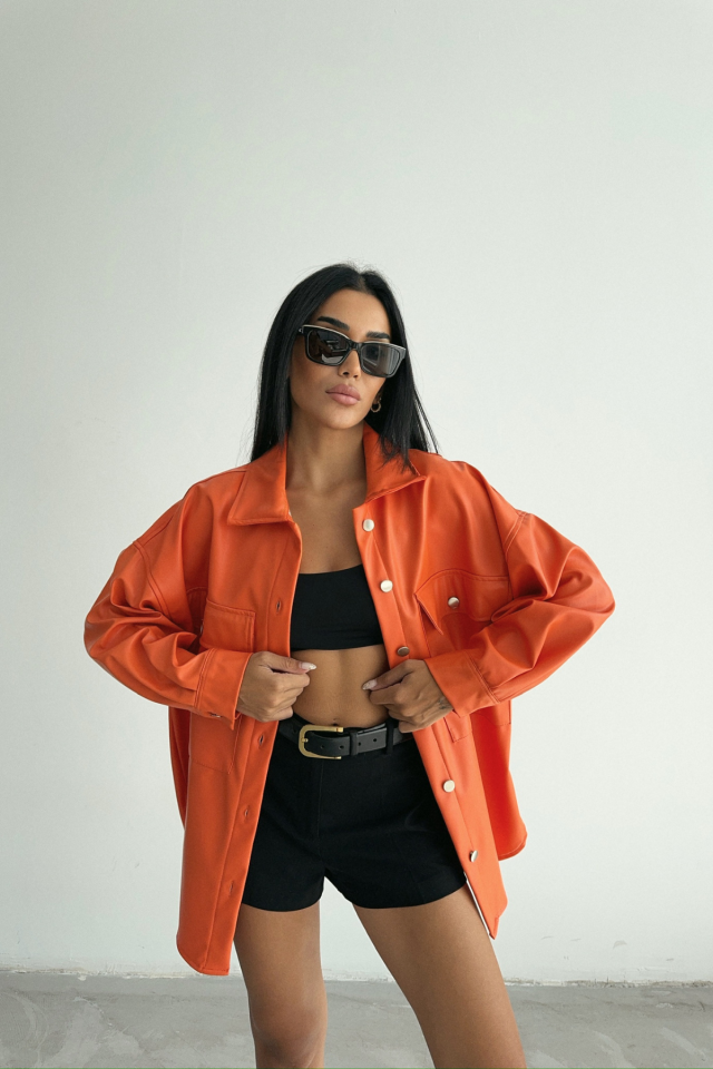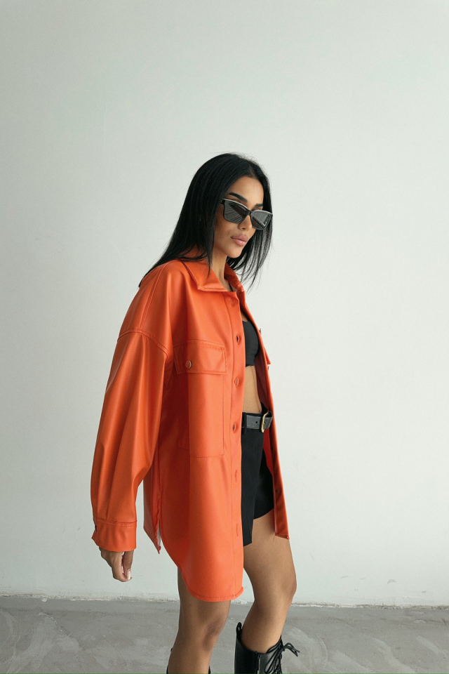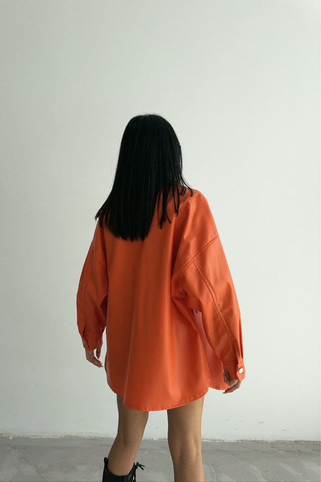 DÜĞMELİ DERİ GÖMLEK BOYFRİEND – Turuncu