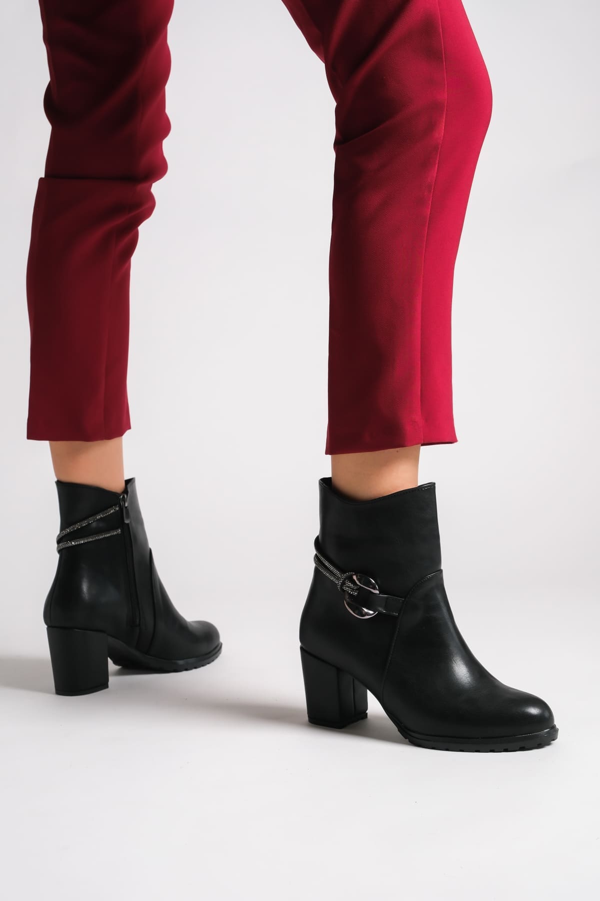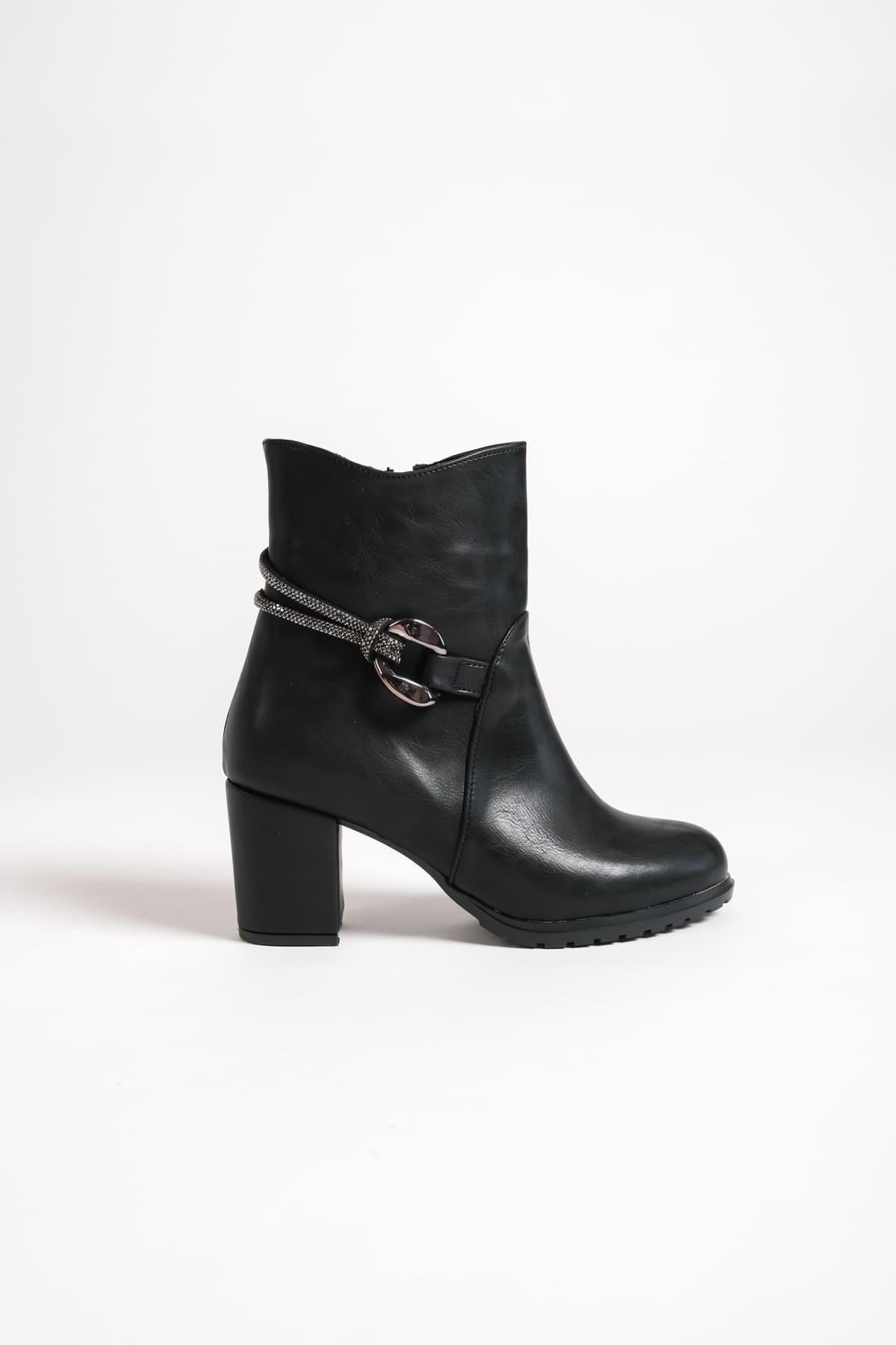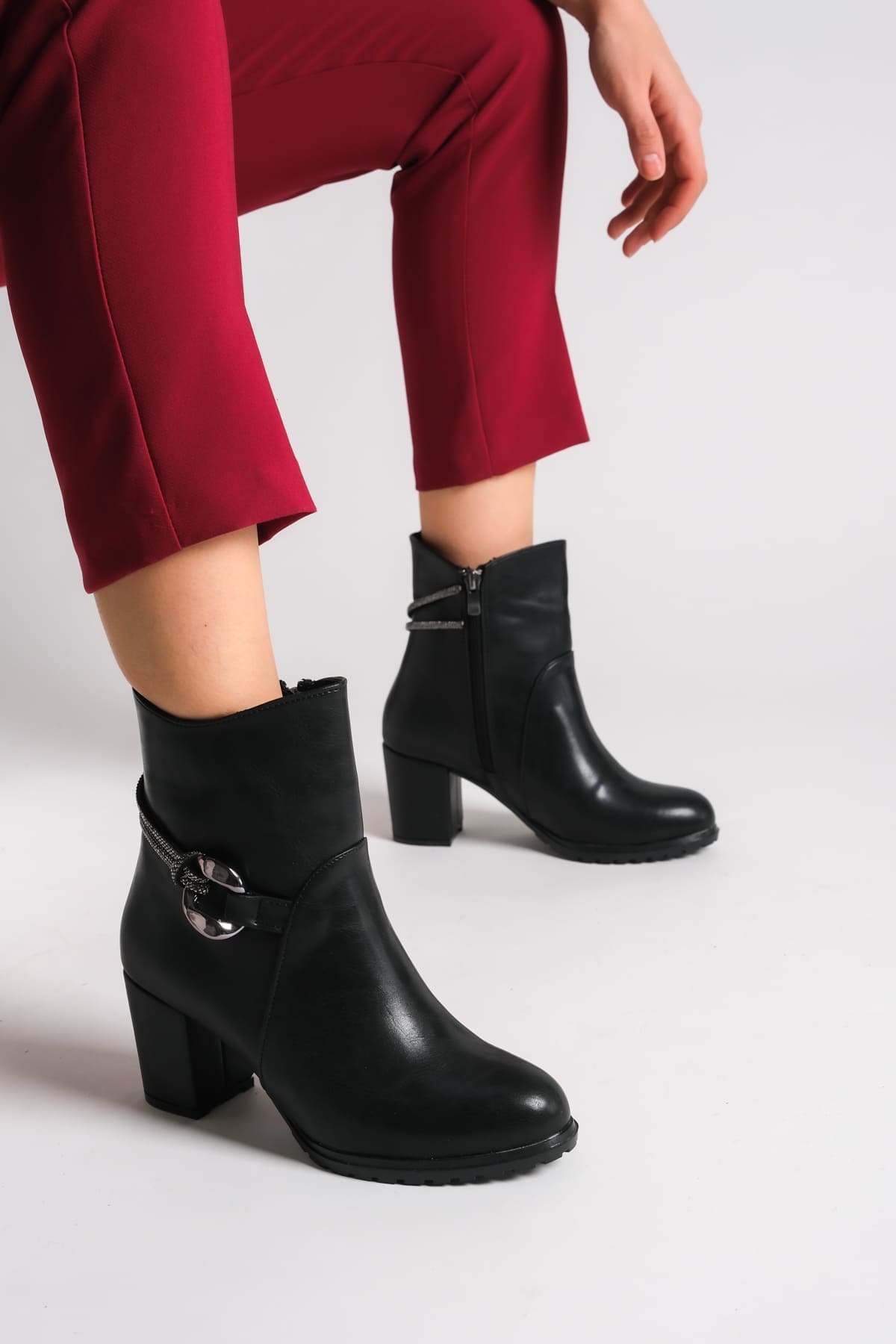 EDNA Fermuarlı Ortopedik Taban Taşlı Topuklu Kadın Bot CST – Siyah