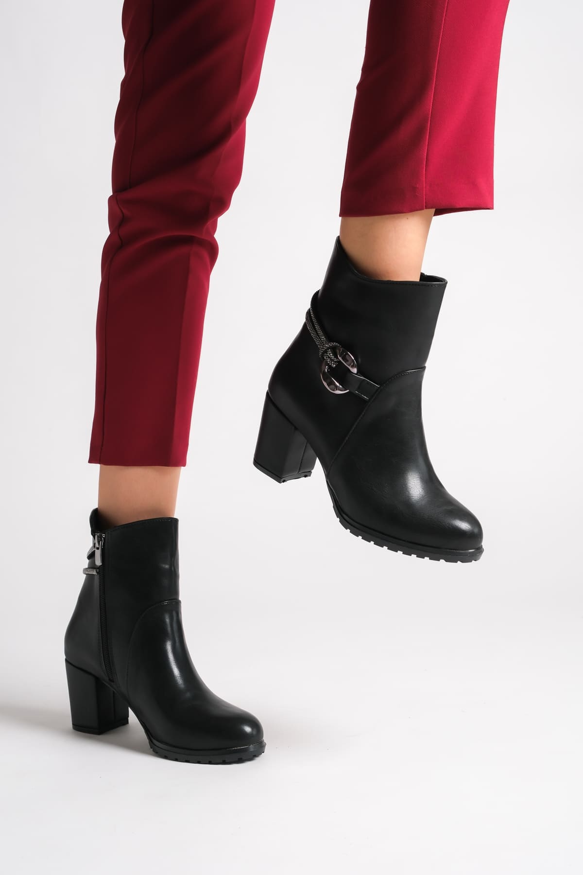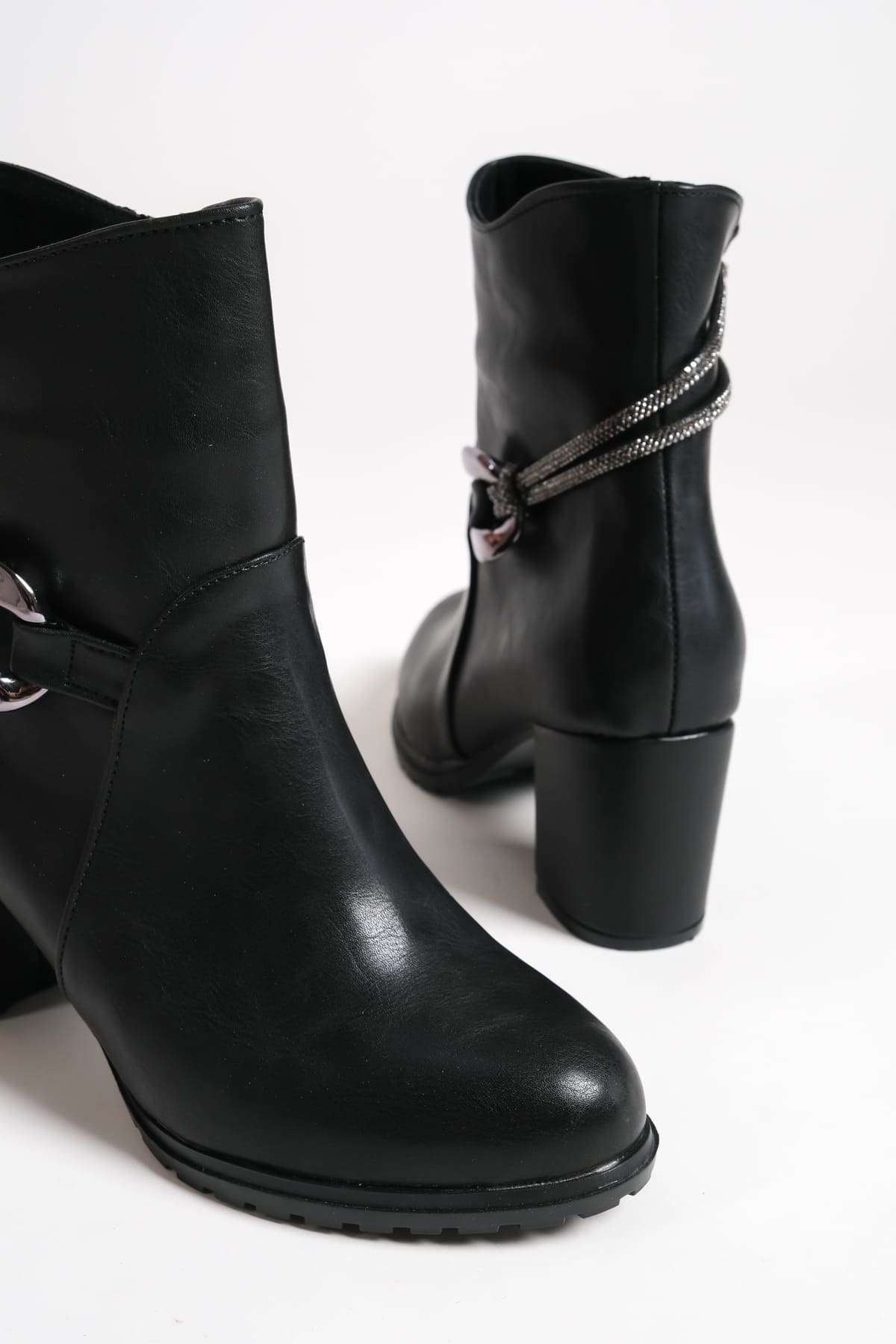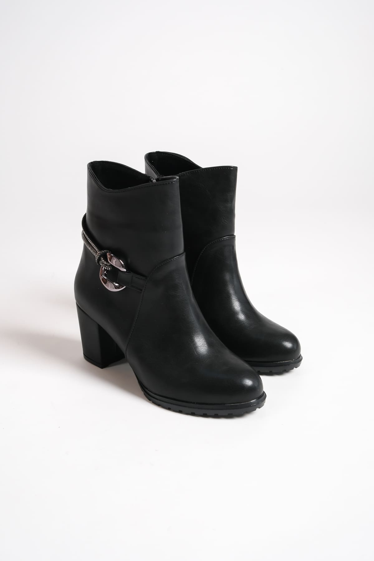 EDNA Fermuarlı Ortopedik Taban Taşlı Topuklu Kadın Bot CST – Siyah