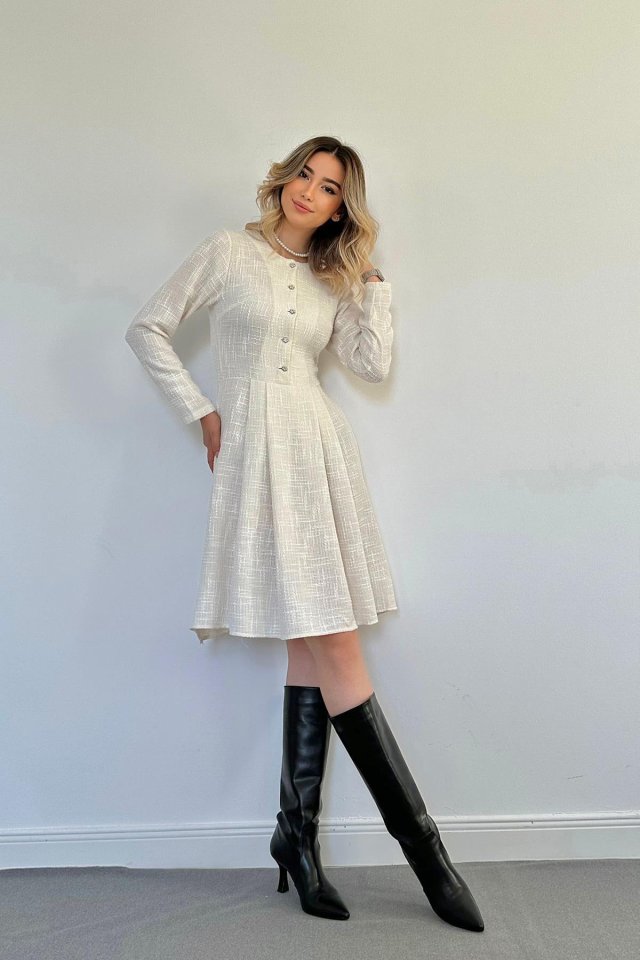 Ekru Kısa Klasik Elbise