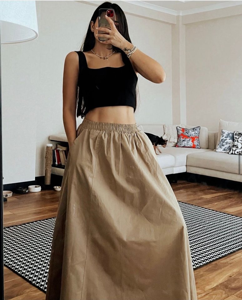 Elastik Belli Midi Etek