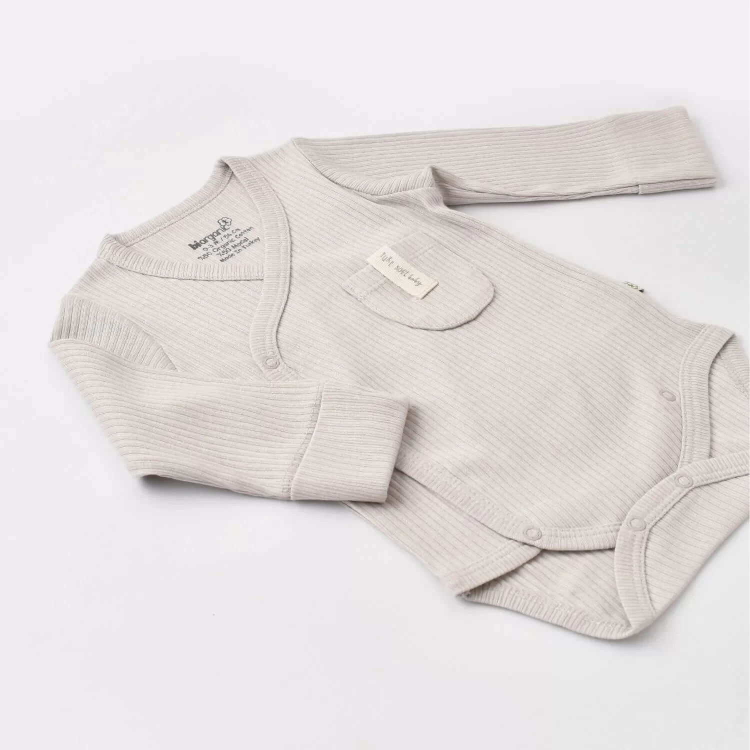 Bebek organik body, pamuklu kumaştan üretilmiştir.