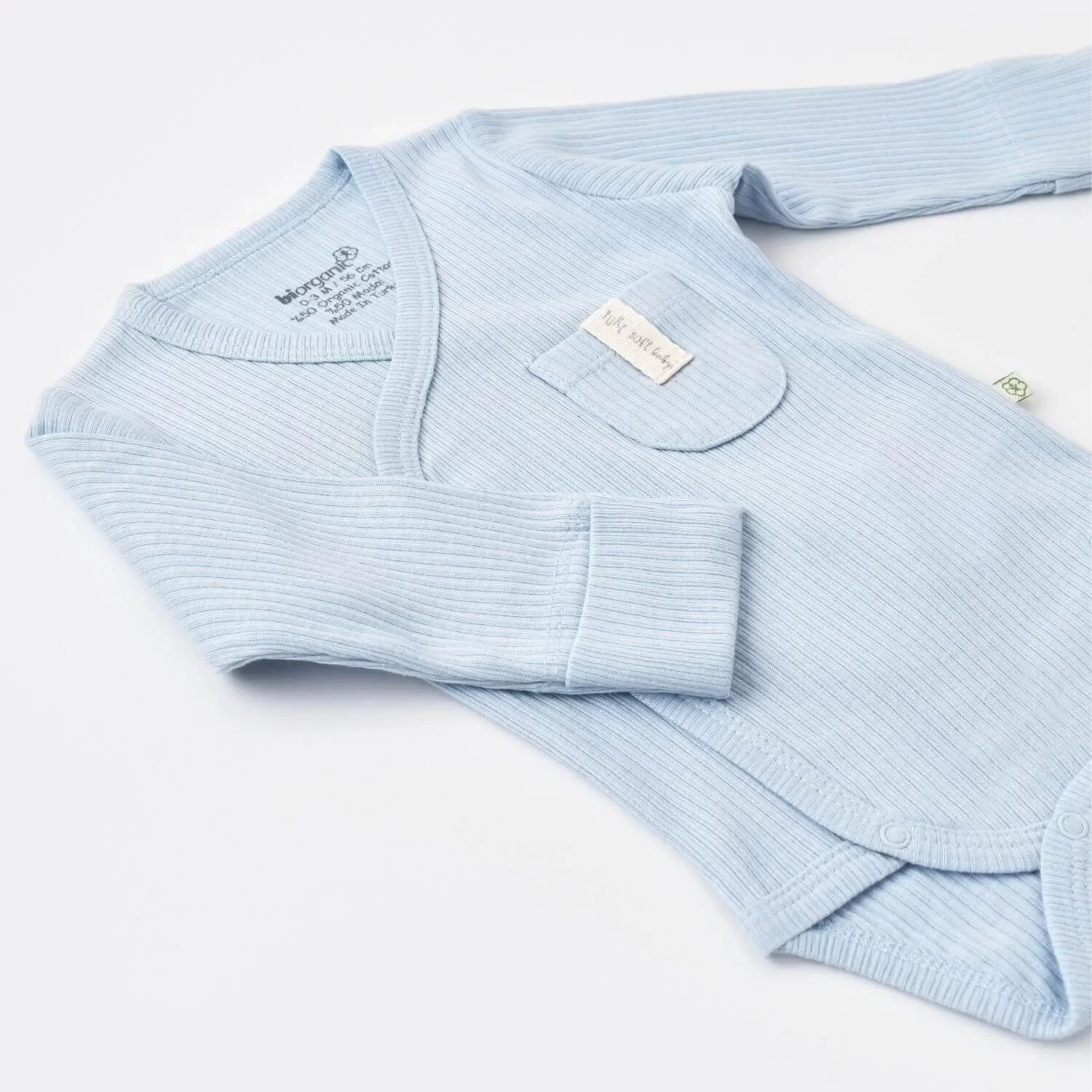 Bebek organik body, pamuklu kumaştan üretilmiştir.