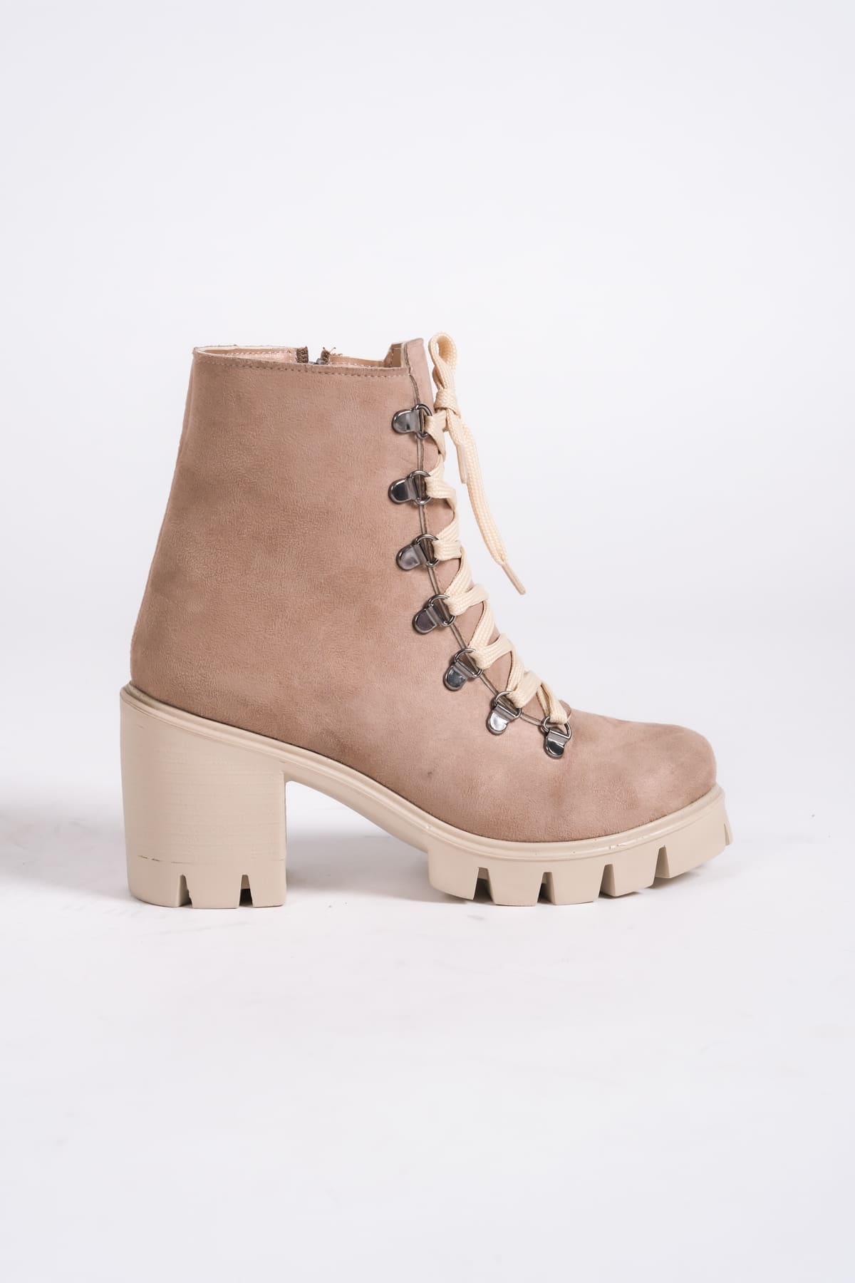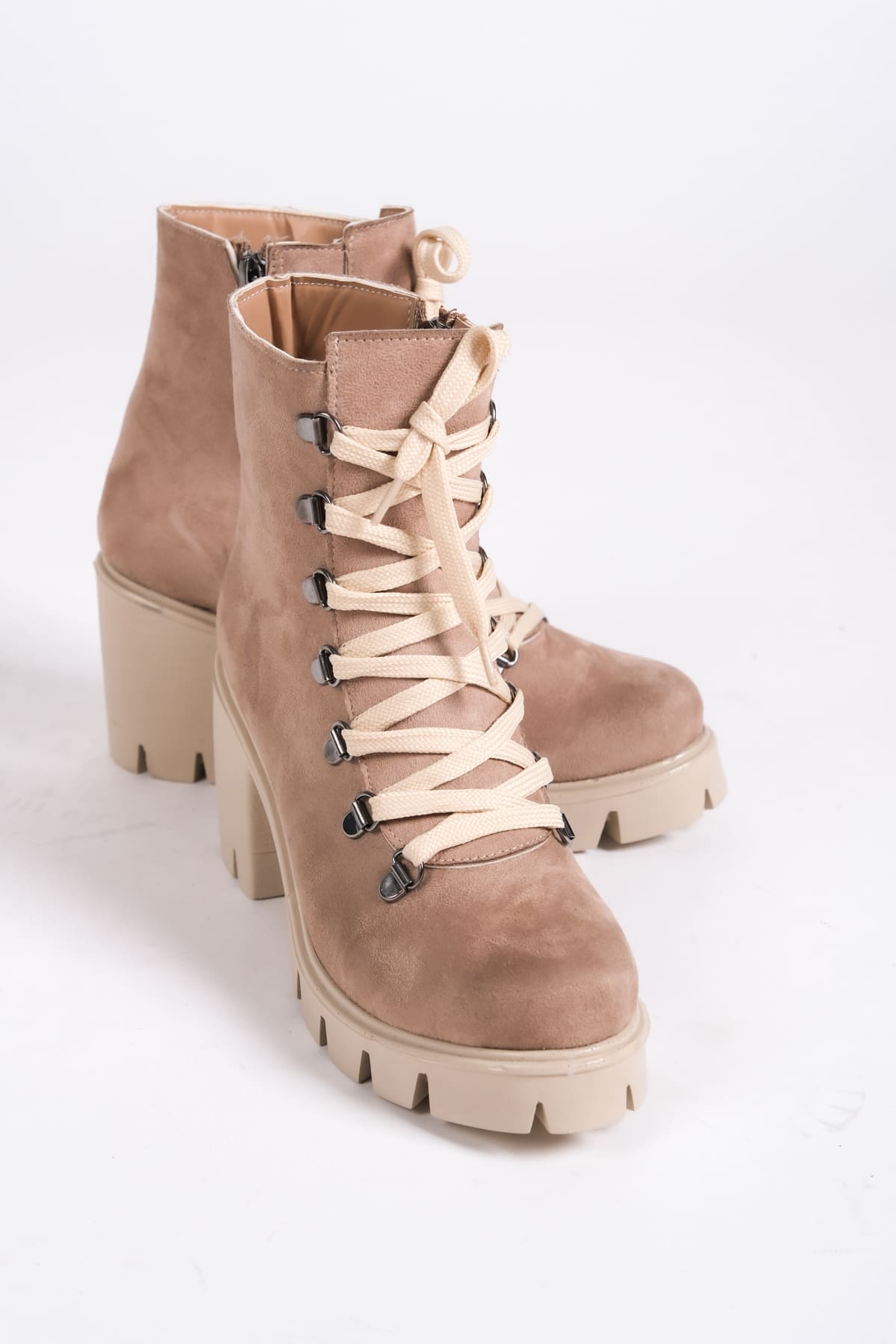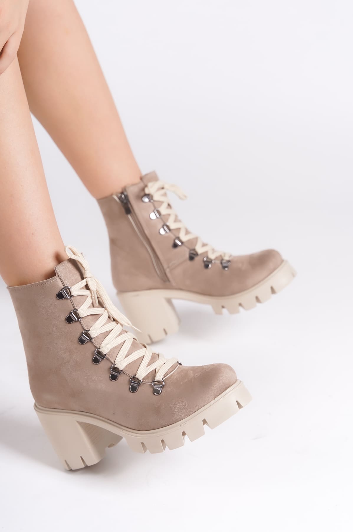 EMMA Bağcıklı Fermuarlı Ortopedik Taban Topuklu Süet Kadın Bot STT – Ten