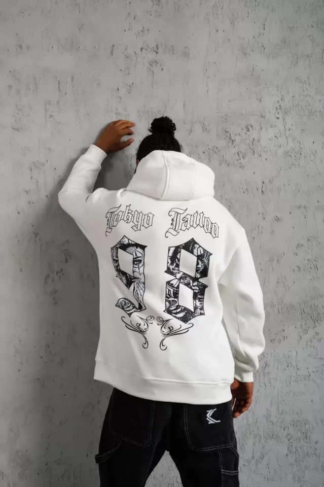 Erkek 98 Baskılı Kapşonlu Sweat – Beyaz