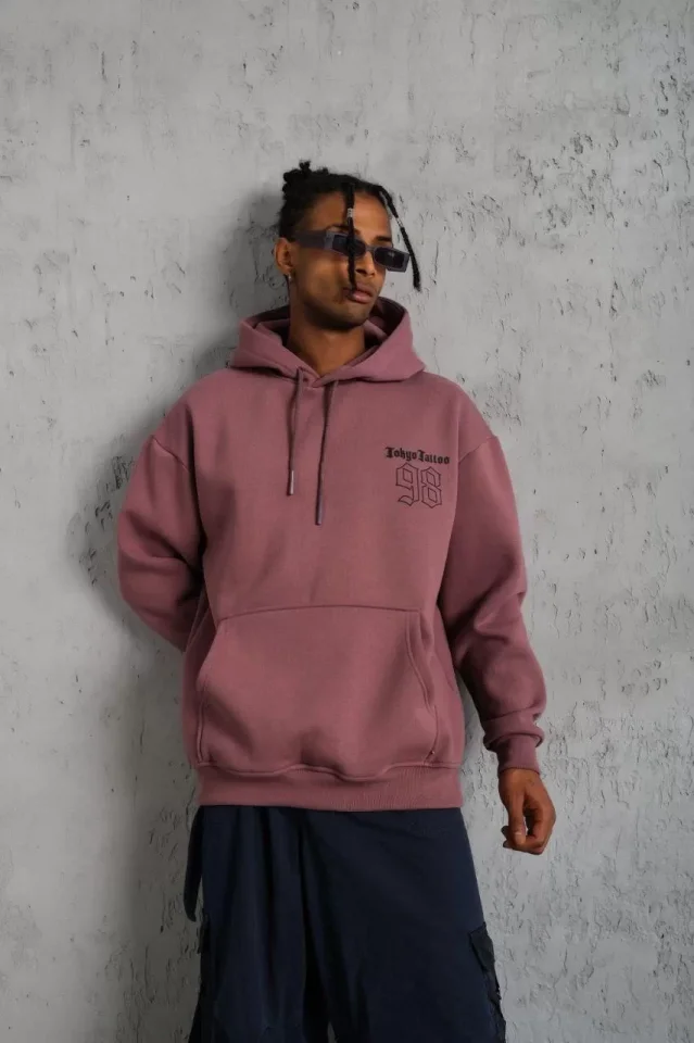 Erkek 98 Baskılı Kapşonlu Sweat – Gül Kurusu