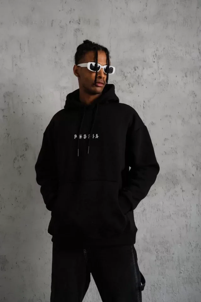 Erkek Astronot Baskılı Kapüşonlu Sweat – Siyah